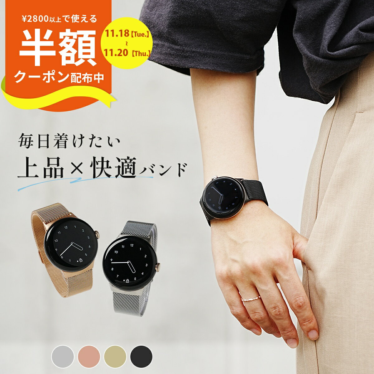 メーカー希望小売価格はメーカーカタログに基づいて掲載しています商品名称Pixel Watch ミラネーゼループ メタル バンド適応機種Pixel WatchPixel Watch2Pixel Watch3 (41mm)Pixel Watch3 (45mm)Pixel Watch4 (41mm)Pixel Watch4 (45mm)カラーシルバーピンクゴールドシャンパンゴールドブラック商品説明バンドを変えれば、気分も変わる。気分を変えて、仕事も家事も効率アップ!日常にこそ試してほしい交換バンド■毎日使いたくなる5つの魅力■... 2,490円 税込 送料別 カードOK レビュー48件 名入れスマホケースエックスモール ![]() | ||