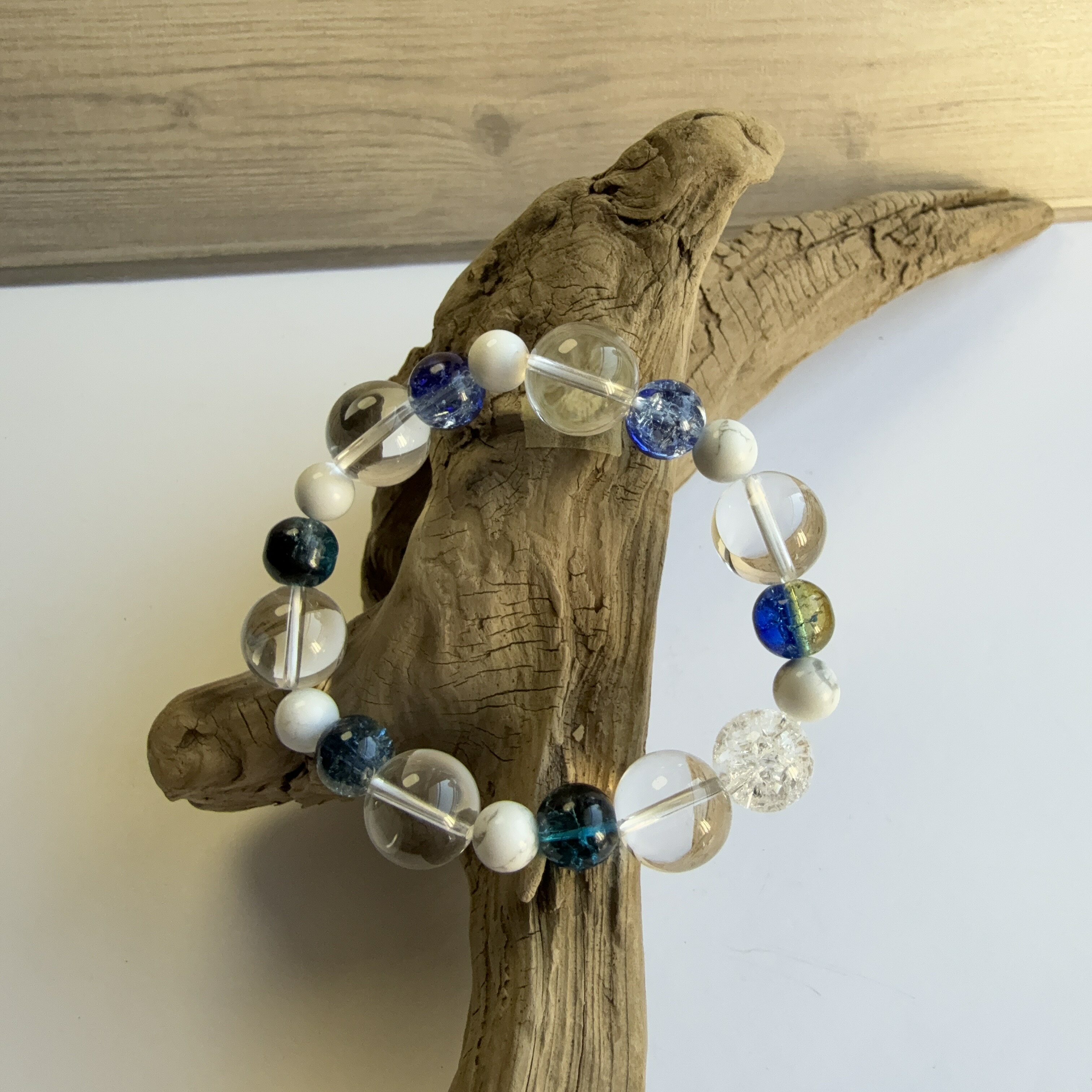 【品番】 048 【使用石】 ・ハウライト・水晶・クラック水晶(染め) 【サイズ】 内径16.0cm(±0.5cm)外径23.6cm(±0.5cm) ※パソコン、モニターの環境によって若干色合いなどが変わることがございますので、ご了承下さいませ。 2,500円 税込 送料別 カードOK あいサポート工房 ![]() | ||