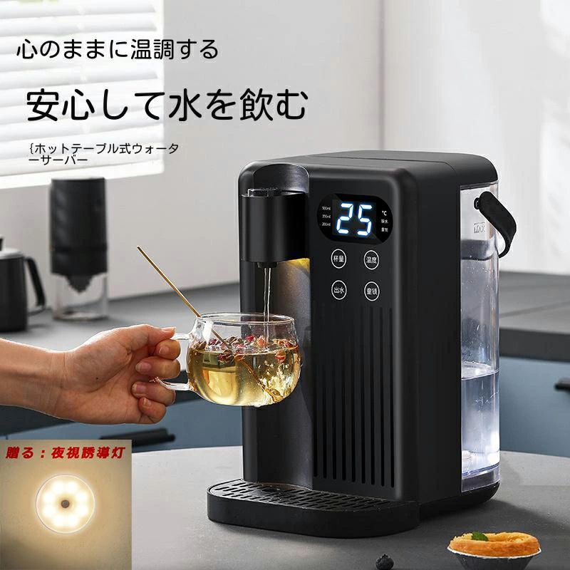 "商品名 電気ケトル 商品説明 【3秒で使える】:コーヒーを飲みたいとき、お湯を沸かすのか、やかんを出すのか。駄目だ!この「ホットウォーターサーバー」があれば、この問題を解決し、便利な操作で手間を省き、生活の質を向上させることができますよ。わずか3秒、あっという間にお湯へ早変わります。 【温度調節が可能】レモン水を淹れる時は25℃、粉ミルク・はちみつ水を淹れる時は45℃、花果茶を淹れる時は60℃、コーヒーを淹れる時は80℃、そしてカップ麺・紅茶を淹れる時は100℃。ご家庭の様々なシーンに適した温度をご用意できます。少しの量を沸かすだけなのに地味に面倒だし時間もかかる必要がありません。 【3つの湯量調節が可能】3Lの大容量と2000Wのパワーで簡単にお湯を沸かすことができます,3級調整可能な容量制御が搭載されており、200ml、350ml、500ml。 必要な容量を選択すると、無駄やオーバーフローを防ぐためにポンプが自動的に停止します。 【安全チャイルドロック・火傷防止】安全チャイルドロック機能は特別に設計されており、誤操作を防ぎ、安全にロックでき、安心して水を飲むことができます。 【軽量で持ち運びが簡単】:コンパクト、軽量、持ち運びが簡単-いつでもどこでも使用できる、あらゆるテーブルやテーブルに使用できます。 旅行、ホテル、寝室、オフィス、会議室、パントリーなどの場合、可動式の水タンクにより水を扱いやすくなっています。 " 11,458円 税込 送料別 カードOK 三木商店オンライン ![]() | ||