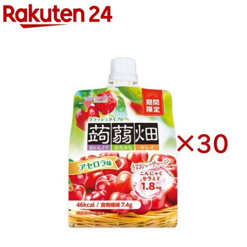 お店TOP>健康食品>食物繊維>食物繊維>こんにゃく>クラッシュタイプの蒟蒻畑アセロラ味 (150g×30セット)【クラッシュタイプの蒟蒻畑アセロラ味の商品詳細】●こんにゃくセラミド1.8mg配合。●アセロラの華やかな香りとすっきりとした酸味で、リフレッシュできる味わいに仕上げました。【召し上がり方】・1日1個(150g)を目安にお召しあがりください。・食べ過ぎあるいは体質・体調によりおなかがゆるくなることがあります。・開栓後はすぐにお召しあがりください。・すこしずつ押し出し良く噛んでお召しあがりください。・キャップをしたまま軽くもんでいただくと食べやすくなります。【品名・名称】洋生菓子【クラッシュタイプの蒟蒻畑アセロラ味の原材料】果糖ぶどう糖液糖(国内製造)、難消化性デキストリン、エリスリトール、果汁(りんご、アセロラ)、洋酒、果糖、こんにゃく粉、こんにゃく芋粉抽出物/ゲル化剤(増粘多糖類)、酸味料、香料、グリセリン、乳酸Ca、グリセリン脂肪酸エステル、甘味料(スクラロース)、ショ糖脂肪酸エステル【栄養成分】1個150gあたりエネルギー:46kcal、たんぱく質:0g、脂質:0g、炭水化物:21.5g(糖質:14.1g、食物繊維:7.4g)、食塩相当量:0.15g、リン:11mg、カリウム:59mg【アレルギー物質】りんご【保存方法】高温、直射日光、冷凍を避けて保存してください。【原産国】日本【ブランド】蒟蒻畑【発売元、製造元、輸入元又は販売元】マンナンライフ※説明文は単品の内容です。リニューアルに伴い、パッケージ・内容等予告なく変更する場合がございます。予めご了承ください。・単品JAN:4902738510256マンナンライフ群馬県富岡市富岡2690-10120-211-529広告文責:楽天グループ株式会社電話:050-5577-5043[ガム・グミ・ゼリー/ブランド:蒟蒻畑/] 5,929円 税込 送料別 カードOK 楽天24 ![]() | ||