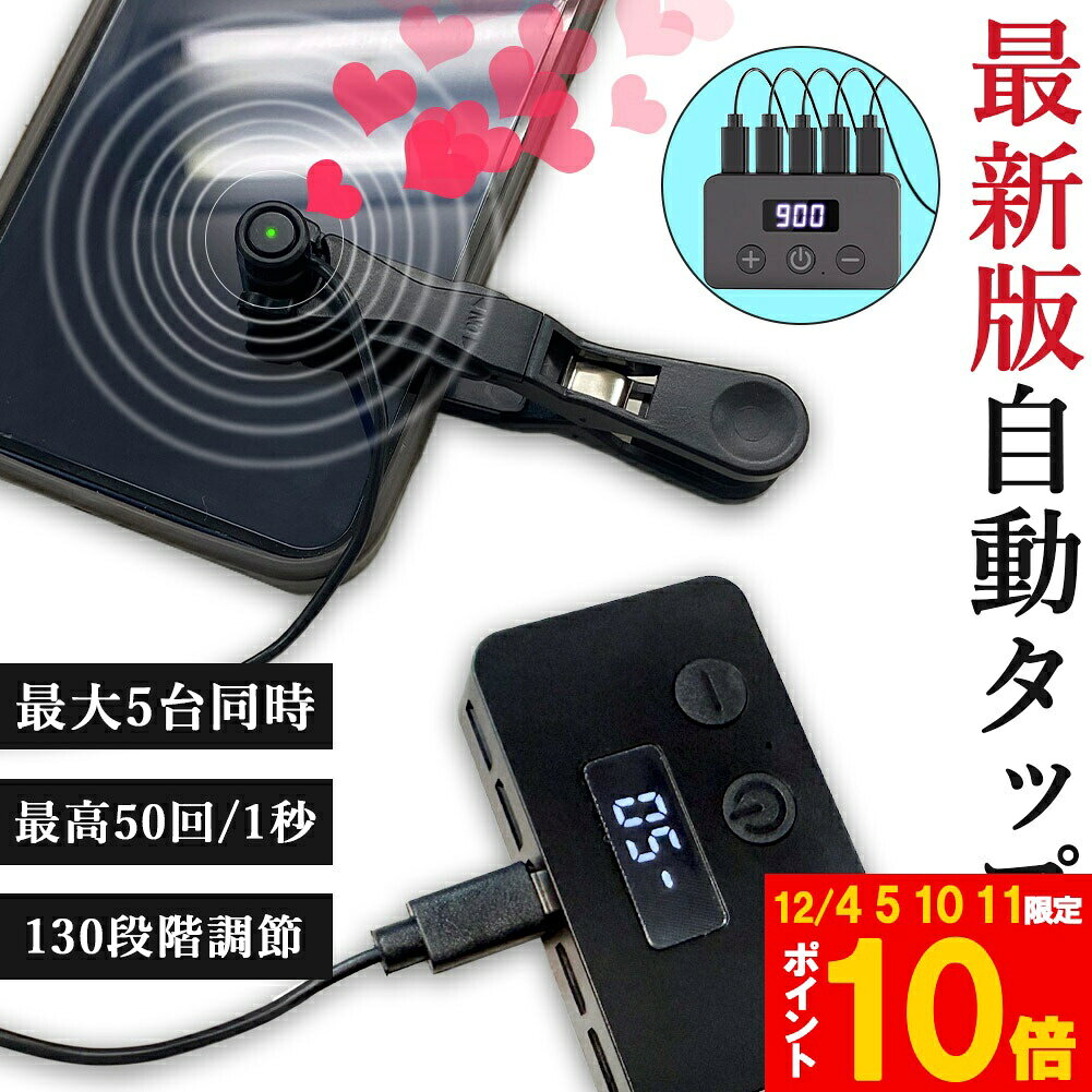\大人気自動タップ機シリーズの最新作登場/とにかく高性能・多機能な欲張り全部乗せタップ機!欲しかった機能が全部詰まったうえに最大5台分までヘッド接続可能!?【最大5台まで接続可能】タップ機本体(操作部分)には5口の接続口があるので、タップヘッドを繋げば最大5台分まで同時にタップが可能です。追加用のタップヘッドのみもご購入いただけるので、お手持ちのデバイス数や用途に合わせてお好みでお選びください。もちろん1台分のみでのご使用もOKです。【驚異の130段階速度設定】最高速度:1秒間に50回タップ最低速度:900秒間に1回幅広い130段階の範囲で速度を自由に調節できます。また3パターンのランダム速度モードも搭載されているので、ライブ配信サイトなどに早すぎてブロックされたり機械だと認識されないように対策ができます。【ランダムモードについて】P1:1秒間に4〜9回P2:0.5〜2秒間に1回P3:5〜20秒間に1回【どこでも使える充電式】外出先や、コンセントなどが近くにない時でもいつでも自動タップができます。充電中は電源ボタン横に赤いランプが点灯し、満充電時は赤いランプは消灯します。本体1点ににつきUSB-TypeC充電コードが1点付属します。※電源アダプターなどは付属しません。【静音で画面を傷つけない】従来の物理的なアナログタップとは違い進化した電子タップ方式なので、タップ音などは鳴らず、画面を傷つける心配もなし!【操作方法】電源ON/OFF:電源ボタンを押す加速:+ボタンを押す減速:-ボタンを押すランダムモード:最高速度の-50まで加速させて再度加速ボタン(+)を押すとP1〜P3の順に切り替え【2種類の固定方法】クリップで挟んで固定またはシールで直接画面に貼り付けて固定のお好きな方法で固定してください。タップヘッド1点につきクリップ1点、交換用シールが4枚付属します。【サイズ】本体(操作部分):約6.5×4.8×1.4cmタップヘッドのコードの長さ:約65cm充電コードの長さ:約45cm[関連ワード]TikTok インスタグラム インスタ Instagram いいね数 ランキング 推し 推し活 配信 ストリーミング 動画 連打 指 タップ 高速 デュアル ダブル 2台 3台 4台 5台 2双 同時 オートクリッカー クリッカー※お使いのタブレットの性能によって感知できる最大速度が異なる可能性がございます。※分厚いスマホケースをお使いの場合はうまく動作しない場合がございますのでお気をつけください。※日本語取扱説明書、撮影用小物類などは付属しておりません。※簡易包装でのお届けとなります。※モニターにより色合いが若干違いが生じる場合がございます。※デザインは入荷時期により若干変化する場合がございます※海外製造品のため、多少の匂い軽微な傷や汚れ、個体差等ある場合がございます。※商品の使用により生じた如何なる損害・被害も弊社では一切の責任を負いかねますので予めご了承ください。※発送方法について:お届け先、個数によって配送情報に記載の配送業者とは異なる場合がございます。日本郵便、佐川急便、またはセイノーエクスプレス(大型商品)でお届けいたします。なお、配送業者はお選びいただけませんので、ご了承ください。 900円 税込 送料別 カードOK レビュー6件 ヒットストア ![]() | ||