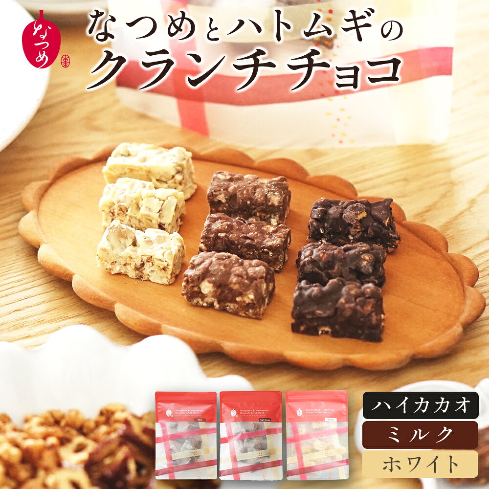 <商品名>なつめとはとむぎのクランチチョコ お試しセット <内容量>10個(個包装) <原材料名> ミルク:チョコレート(国内製造)(砂糖、カカオマス、ココアバター、全粉乳、脱脂粉乳)、はとむぎ、なつめ / 乳化剤、香料(一部に乳成分・大豆含む) ハイカカオ:チョコレート(国内製造)(カカオマス、砂糖、ココアバター)、はとむぎ、なつめ / 乳化剤(一部に乳成分・大豆含む) ホワイト:チョコレート(国内製造)(砂糖、ココアバター、植物油脂、脱脂粉乳、全粉乳、乳糖)、はと... 1,480円 税込 送料別 カードOK 棗専門店 なつめいろ ![]() | ||