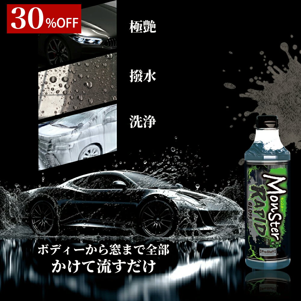 【当店、プロスタッフ楽天市場店について】 新着商品、ランキング上位商品、人気商品、割引き、値引きセール商品、お得用商品、TVや雑誌などメディアに取り上げられた商品はお問い合わせが多く、数に限りがありますので、お早目にお買い求めください。 【関連ワード】 Prostaff プロスタッフ 公式ストア 楽天 車用品 青空駐車 プレゼント 洗車グッズ カー用品 カーグッズ 車用品 洗車 洗車用品 スプレー フォームガン 流すだけ 撥水コーティング 簡単施工 スピーディー 撥水シリコン 速攻性 翌日硬化 被膜性 艶 ツヤ 滑り コーティング膜 透明ベール 滑らか 窓ガラス 油膜 平滑 クリア 車全体 ボディー ホイール サイドガラス リアガラス 撥水スプレー 撥水 コート 撥水スプレー 車 ガラス 洗車 撥水 ワックス ガラス シャンプー洗車 車磨き 香り付き いい匂い メンテナンス 洗浄【単品での購入・他モンスター製品の購入はこちら】 モンスターラピッドグロス 希釈して使用できる、濃縮コーティングシャンプーです。 フォームガン、トリガースプレー、バケツ洗車等幅広い使用方法に対応。 フォームガンの場合、ボディーにかけて水で流すだけで即撥水効果を体感できます。今までのコーティングの認識が変わります。 【商品ポイント】 ・フォームガンでかけて、流すだけ 希釈してフォームガンで車全体に噴霧して、水で流すだけで車全体が撥水コーティングに仕上がります。 劇的な簡単施工でスピーディーにできます。 2種類の撥水シリコンを配合することで、速攻性効果と翌日硬化仕上がる効果により優れた被膜性を実現。 また2〜3回繰り返すことでより効果アップします。 ・艶と滑りが劇的アップ 施工後車全体が、コーティング膜(透明ベールに覆われたような)性が高く艶キラめく表面仕上げになります。 また、濡れたクロスで拭き上げると滑らかな表面が体感できます。 ・窓ガラスまで車全体仕上げ ボディー・ホイールはもちろん、さらに「窓ガラス」にも撥水コーティング効果を与えます。 またサイドガラスやリアガラスによくある油膜を平滑にさせて、水流れをスムーズにさせ視界をクリアにします。 2 2,080円 税込 送料込 カードOK レビュー17件 PROSTAFF(プロスタッフ) 公式 ![]() |