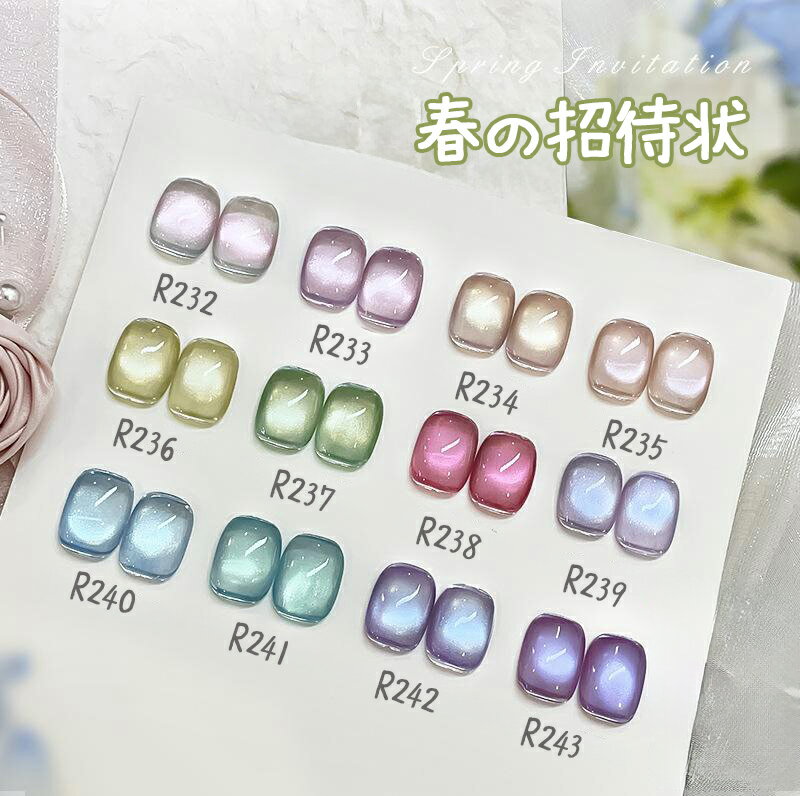 春の招待状 指先から春を纏う、新世代キャッツアイジェル。 高密度マグネット配合で、ガラス玉のような透明感と立体的な輝きを演出します。 特徴 厚塗り不要、初心者でも簡単プロ級仕上げ 質感 単色でも上品なサテン質感 カラーバリエーション 全16色(春をイメージ) 重量 12g カラーバリエーション R232ひと塗りで、きらめきを纏う R233揺れる色彩で、指先に美しさを R234花のように気品ある輝き R235柔らかな光の秋色ブラウン R236唐棉色で自然な美しさ R237軽やかで上品なカラー R238菟葵の花のような優しい色 R239翠珠のような深みと透明感 R240爽やかなブルーで夏を楽しむ R241自然な色合いの青姫木 R242神秘的な紫色で指先を彩る R243清楚で優雅なアイリスカラー おすすめポイント 高密度マグネット3.0濁りなし、吸い付き抜群 キャツアイ効果光を集め、立体的な輝きを実現 季節感春色を指先にのせて季節を感じる メッセージ 「春との出会いは、指先から。」 花咲く季節をイメージしたカラージェルで、あなたの手元にロマンスと生命力を。💅 関連商品はこちら 一緒に使うともっと可愛い!人気アイテムをチェック! ネイル用ドライフラワー 【人気No.1】3in1マグネット ハートマグネット 990円 税込 送料込 カードOK レビュー17件 cozy space 楽天市場店 ![]() | ||