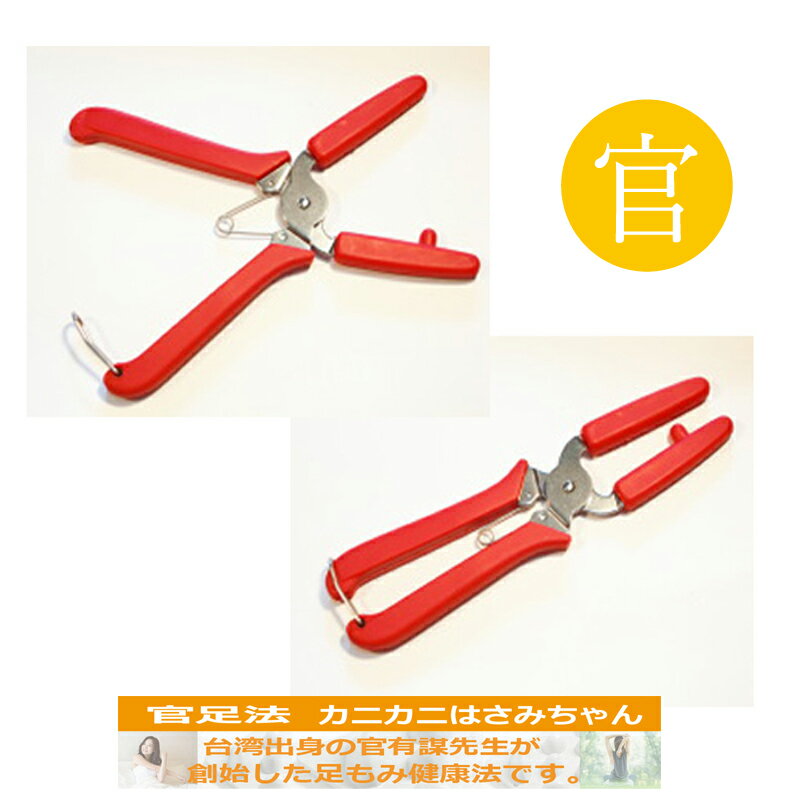 官足法 カニカニはさみちゃんのご紹介 ・ピンポイントで指先や指の間、くるぶし周辺等の足つぼを刺激出来ます。 ・片側に突起の付いたペンチタイプですので軽い力でご使用出来ます。 ・お気掛かりな足つぼ、反射区を重点的に刺激されたい方向けのグッズです。 【カニカニはさみちゃんの使い方】 胸部リンパ、気管支の反射区(下写真) 扁桃腺の反射区(下写真) 脳下垂体の反射区(下写真) 目や耳の反射区。指と指の間も斜めに挟んで刺激します。(下写真) 子宮(前立腺)、尿道、卵巣(睾丸)、腰周りの反射区。(下写真) 踵からくるぶしの後ろにかけて硬くなっているところをほぐします。 直腸筋の反射区。お通じなど腸関係が気になる方に。(下写真) 上下半身のリンパの反射区。 老廃物が溜まると膨らみます。硬くならないようにケアしましょう。(下写真) 足の反射区総合図表 (足の汚れが万病の原因だった 官有謀著 より抜粋) 骨盤矯正や腰のマッサージに体にやさしい天然木の「骨盤職人」はこちらです。 動かせるもみ玉で骨盤矯正や腰痛対策、首筋などに使えて大好評です。 官足法 カニカニはさみちゃんの詳細 商品名 カニカニはさみちゃん サイズ 長さ19.8cm×幅4.6cm、厚み1.3cm 製造元 官足法官有謀事務所 材質 ステンレス、硬質ゴム 広告文責 シンワ工業株式会社 TEL:03-3830-1616 販売元 官足法官有謀事務所 生産国 日本 区分 健康機器 カニカニはさみちゃん に関するお問合せは下記でも受け付けております。 官足法事務所(株式会社健心) TEL:03-5338-6482 祝日を除く月曜〜金曜の10時から17時人間の生命は究極的には血液に支えられているという考えに基づき、その血液をいかにきれいにするか、つまり腎臓機能をいかに高めて血液を全身にスムースに循環させることに着目しました。 誰にでも簡単に出来て効果抜群。 健康を取り戻したい全ての人にお勧めします。 カニカニはさみちゃんが新しくなりました。 従来は挟む部分(はさみで言うと刃の部分)の片側が2個の突起、もう片側が1個の突起で両側から反射区(≒つぼ)を刺激する形でした。 よく言えば両側から反射区を刺激出来ましたが、刺激が分散する弱点もありました。 新しくなったカニカニはさみちゃんは片側に1個の突起でもう片側は平らになっています。 この形状になり、1つの反射区にピンポイントでより強い刺激を与えることが可能となりました。 3,614円 税込 送料別 カードOK レビュー38件 健康のお手伝い 楽天市場店 ![]() | ||
