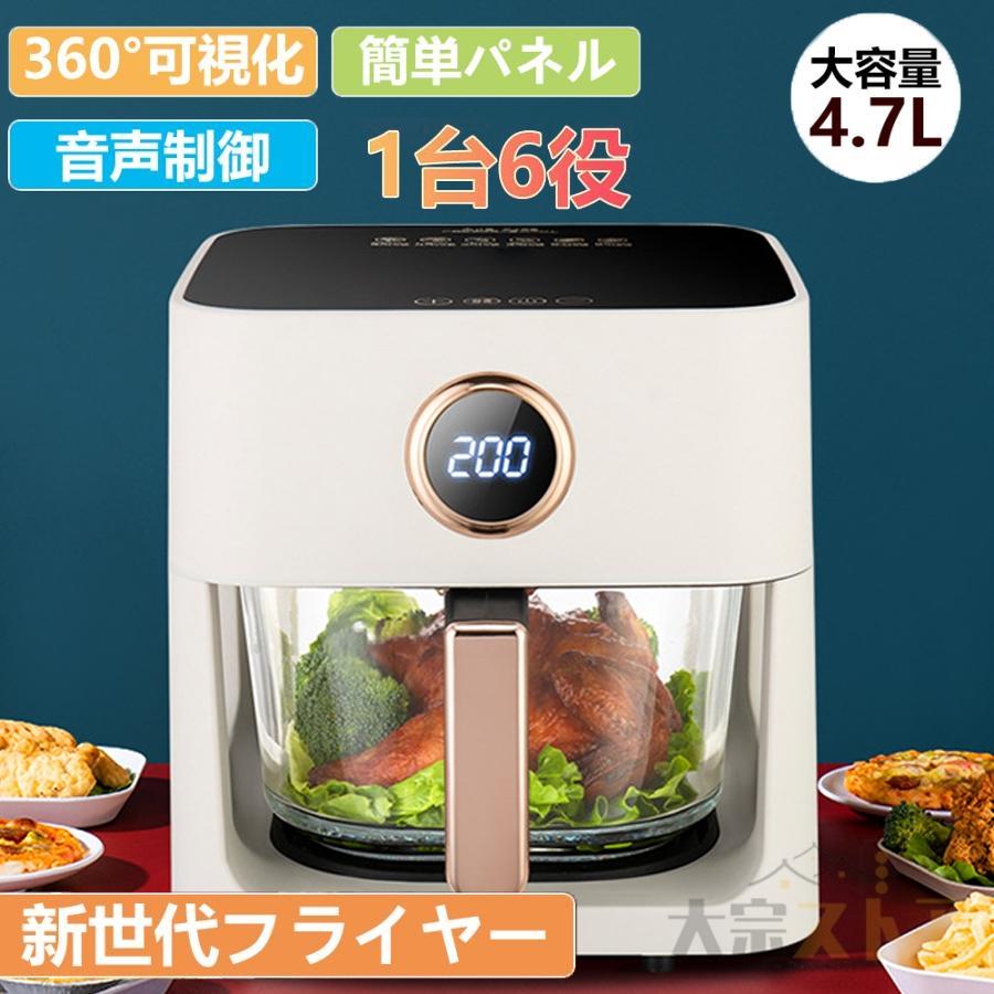 ノンフライヤー 4.7L 大容量【商品詳細】定格電圧:100V 50/60Hz消費電力:1200Wサイズ(約):25.5×25.5×26.5cm重量(約):5kg電源コード長(約):60cm容量(約):4.7L最高温度:200度タイマー(約):30分定格使用時間(約):30分温度ヒューズ:185度材質 ガラス、PP、ABS、鉄「油を使わず美味しくヘルシーに」食材の油分と水蒸気のみで調理。油を使用して揚げたものよりも脂肪分約80%カットし、ヘルシーな仕上がりになります。360°の熱風循環でカラッと焼き上がりま... 11,490円 税込 送料別 カードOK samidare ![]() | ||
