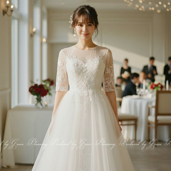 【AIによるお勧めポイント自動生成】 このウェディングドレスは、シンプルでエレガントなAラインが特徴です。長袖のデザインと編上げによるサイズ調節が可能で、花嫁の体型にぴったりフィットします。ふんわりとしたチュールスカートは、パニエを履くことでさらに美しいラインを演出。前撮りや後撮り、二次会、家族挙式など、さまざまなシーンで活躍します。白のドレスは、どんな場面でも花嫁を引き立て、特別な一日をより一層華やかに彩ります。刺繍は上半身のみ スカートは無地の柔らかチュールです 背中編み上げでバス... 13,800円 税込 送料別 カードOK レビュー3件 グレースシトラス ![]() | ||