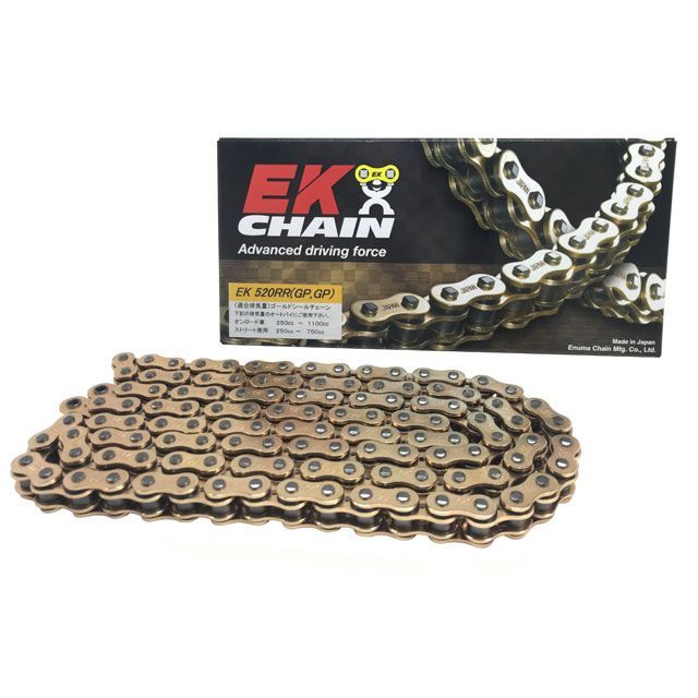 EK 江沼 チェーン 530SRX2 シリーズチェーンサイズ:530リンク数:110シールタイプ:QXリングジョイントタイプ:SLJ(スクリュー)カラー:ゴールド(GP;GP)SRX:標準高品質QXリングチェーン。低価格で高品質を実現した標準的なQXリングチェーンEK独自のQXリングは、Oリングチェーンに比べ50%フリクションを減らし、しかも50%耐久性を増しています。・長寿命を保証するソリッドブッシュ。・高耐久ソリッドローラ。・四方かしめピン。・特殊合金プレート。・軽量化のための内プレート穴採用。・特殊PTFEグリースは粘着力に優れ、耐摩耗性向上に貢献。・専用工具を使用せず取り付けできるチェーンなのでどなたでも装着可能です。また、取付方法は簡素で、ナットをねじ込んで折るだけの簡単2ステップです。530SRX2楽天 HD店 14,285円 税込 送料別 カードOK レビュー1件 ヒロチー商事 ハーレー 楽天市場店 ![]() | ||