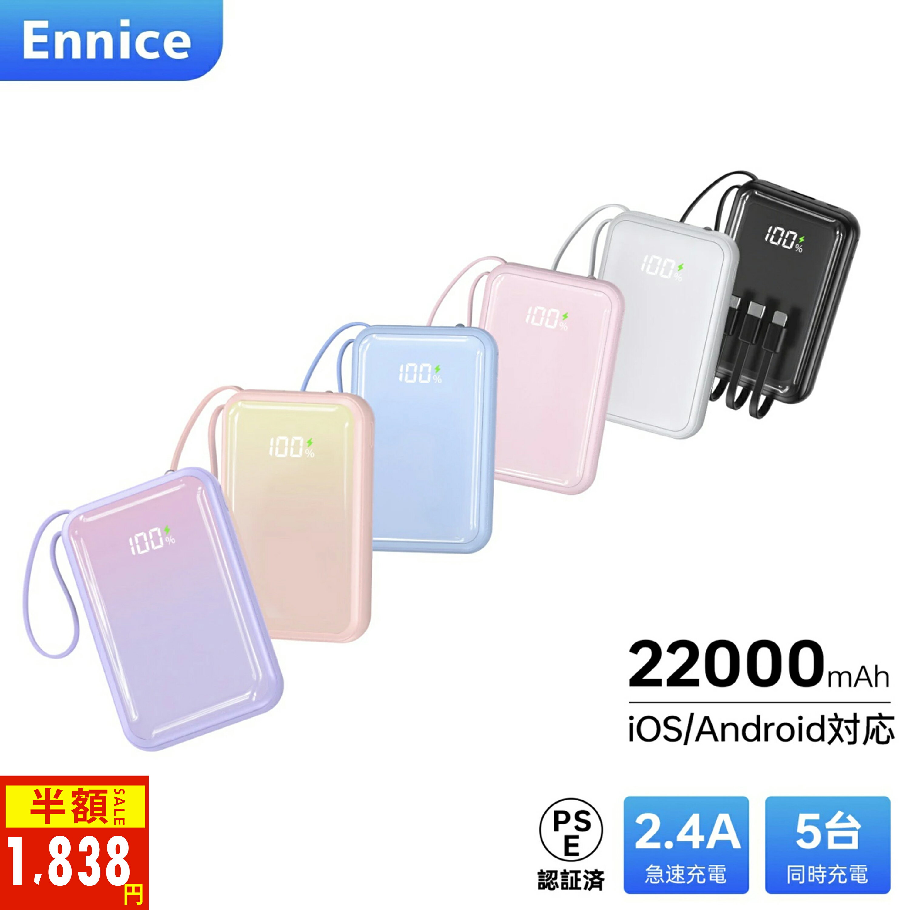商品詳細 商品名 22000mAh大容量モバイルバッテリー 商品仕様 商品型番:N14 バッテリー容量:22000mAh サイズ:約101×66×29mm 重量:約230g 入力:5V = 2.1A 出力:5V = 2.1A 保護回路:過充電・過放電・過熱・過電流 パッケージ内容 1 xモバイルバッテリー本体 1 x日本語取扱説明書 1 x充電ケーブル PSE認証 届出事業者名:合同会社shimizu PSマークの種類:PSE オススメポイント 🔋【コスパ最高!5台まで同時充電可能!】🔋... 1,980円 税込 送料込 カードOK レビュー796件 ENNICE楽天市場店 ![]() | ||