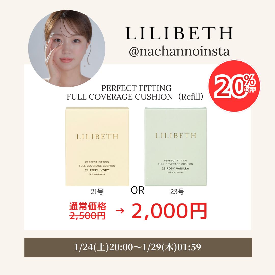 肌に乗せた瞬間にぴたっと感動的な密着を実現。毛穴やシミを綺麗にカバーし、どの角度から見ても滑らかなシルク肌を演出します。 特許取得済みの17種類の保湿アミノ酸成分を配合することで肌にしっとりしたハリが生まれ、8種類のハーブエキスの鎮静効果は健康的な肌へと導きます。 美白、シワ対策、紫外線カットの3つの機能が1つになったオールインワンタイプのクッションファンデーションで、「30時間ラスティング」と呼ばれヨレにくさも特徴です。 高級感あるベースメークを叶える、公式認証機関でテスト済みの低刺激デイリークッションファンデーションです。 19号(ロージーポーセリン) まるで磁器のように華やかなベージュカラー。ベースで透き通った肌を表現 ・普段17号〜19号を使用する方 ・普段17号を使っているが華やかさよりナチュラルな肌の表現をお望みの方 ・普段21号を使っているが華やかな肌の表現をお望みの方 21号(ロージーアイボリー) 明るいアプリコットアイボリーカラー。ベースで華やかな肌を表現 ・普段21号を使用している方 ・普段19号を使っているが華やかさよりナチュラルな肌の表現をお望みの方 ・普段23号を使用しているが、ハイライトゾーンは明るくしたい方 23号(ロージーバニラ) 自然なピンク色のベージュ。ベースで健康的な肌を表現 ・普段23号を使用する方 ・普段21号を使っているが、華やかさよりナチュラルな肌の表現をご希望の方 ・21号と23号の中間くらいの肌トーンの方 本体にはクッションファンデーションとパフ1枚が付いています。別にリフィルは付きません。 使用方法 パフに適量とったあと、肌に軽く叩くようにして密着させます。 カバーが必要なところはもう一度叩くようにして重ねます。 メーク直しにもお使いいただけます。 保湿成分等が蒸発して内容物が収縮する恐れがあるので、使用後は必ず容器の蓋をお閉めください。 容量 13g 使用及び保管上の注意 ・使用時や使用後、赤みや腫れ、かゆみなどの症状が表れたら使用を止め、専門医と相談してください。 ・傷がある部位、目の周りの使用はお控えください。 ・高温または低温、直射日光のあたる場所での保管はお避けください。 成分 水、シクロペンタシロキサン、酸化チタン、メトキシケイヒ酸エチルヘキシル、PG、ジメチコン、メチルプロパンジオール、セチルPEG/PPG-10/1ジメチコン、ナイアシンアミド、メチレンビスベンゾトリアゾリルテトラメチルブチルフェノール、イソノナン酸エチルヘキシル、酸化鉄、ペンチレングリコール、ジフェニルシロキシェニルトリメチコン、メドウフォーム油、水添ポリ(C6-14オレフィン)、酸化亜鉛、カプリリルジメチコンエトキシグルコシド、トリメチルシロキシケイ酸、硫酸Mg、ジステアルジモニウムヘクトライト、ポリメチルシルセスキオキサン、メタクリル酸メチルクロスポリマー、プロパンジオール、デシルグルコシド、フェノキシエタノール、水酸化Al、ジメチコンクロスポリマー、トリエトキシカプリリルシラン、(ジメチコン/ビニルジメチコン)クロスポリマー、シア脂、カプリリルグリコール、カンジダボンビコラ/(グルコース/ナタネ油脂肪酸メチル)発酵物、ベタイン、アラントイン、バチルス/ダイズ発酵エキス、エチルヘキシルグリセリン、アデノシン、スイカズラ花エキス、キキョウ根エキス、ツボクサエキス、レンギョウ果実エキス、ハス種子エキス、ゴボウ根エキス、ハナスゲ根エキス、プロポリスエキス、EDTA-2Na、キサンタンガム、BG、1,2-ヘキサンジオール、ビオサッカリドガム-1、グリシン、セリン、グルタミン酸、アスパラギン酸、ロイシン、アラニン、リシン、アルギニン、チロシン、フェニルアラニン、バリン、トレオニン、プロリン、イソロイシン、ヒスチジン、メチオニン、システイン、香料、リモネン、リナロール、シトロネロール、ヒドロキシシトロネラール 使用期限 21号:2026年11月27日/23号:2026年11月28日/19号:2028年8月21日 製造販売元 LILIBETH 株式会社グロースカンパニー/東京都世田谷区野沢4-21-17 商品区分 化粧品 原産国 韓国 商品名 リリベス パーフェクトフィッティング フル カバーレッジクッション 輸入者 UNITY株式会社 東京都渋谷区神南1-5-6 H_O渋谷神南6F 0800-500-6169 広告文責 UNITY株式会社 0800-500-6169 ご注意 お使いのモニターの発色具合によって、実際のものと色が異なる場合がございます リリベスクッションファンデーション LILIBETH クッションファンデ 本体 21号 23号 フルカバレッジ 毛穴カバー ツヤ肌 密着 美肌 韓国コスメ K-コスメ 国内発送 送料無料 公式正規品 パーフェクトフィッティング オールインワン 美白 しわ対策 紫外線カット 30時間ラスティング ヨレにくい 高保湿 保湿成分配合 ハリ 弾力 肌荒れ カバー力 高密着 パフ付き デイリークッションファンデーション スキンケア兼用 敏感肌対応 低刺激 美容液成分 ナイアシンアミド 17種類保湿アミノ酸 8種類ハーブエキス 鎮静効果 健康肌 メイク直し可能 明るい肌