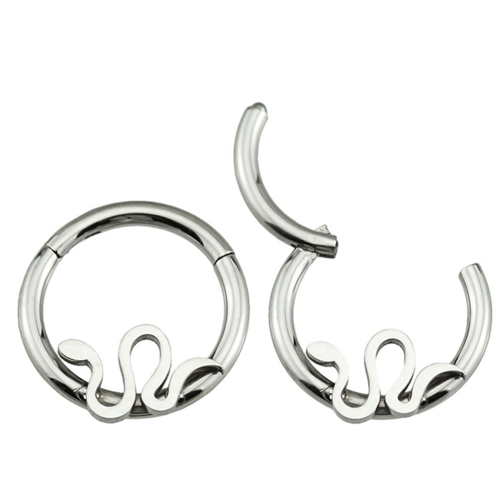 ワンタッチで装着できるヒンジ付きクリッカー型のボディピアスに蛇(へび)をデザインしたスネイクリングピアス。蝶番がついて開閉できる16ゲージのシームレスリングは、簡単に到着できるので男性からも女性からも人気のボディーピアスです。耳たぶやヘリックス、トラガス、コンク、セプタムなど軟骨ピアスとしてだけでなく、ニップル乳首など幅広いピアッシングに使えるのポイント。安心のサージカルステンレス316L製なのもうれしい。メンズでもレディースでも使えるのでペアルックやプレゼントにも最適です。おしゃれなセグメントリングボディピアス。 スペック16ゲージ(1.2mm)内径:8mm素材ステンレススティール備考・表示は1ヶの価格です。・写真はイメージです。お客様のモニターにより商品の色やイメージが異なる場合があります。・スペックサイズは目安としての参考値です。多少誤差がある場合がございますので予めご了承ください。 2,420円 税込 送料別 カードOK ピアス専門ショップGreen Piercing ![]() | ||