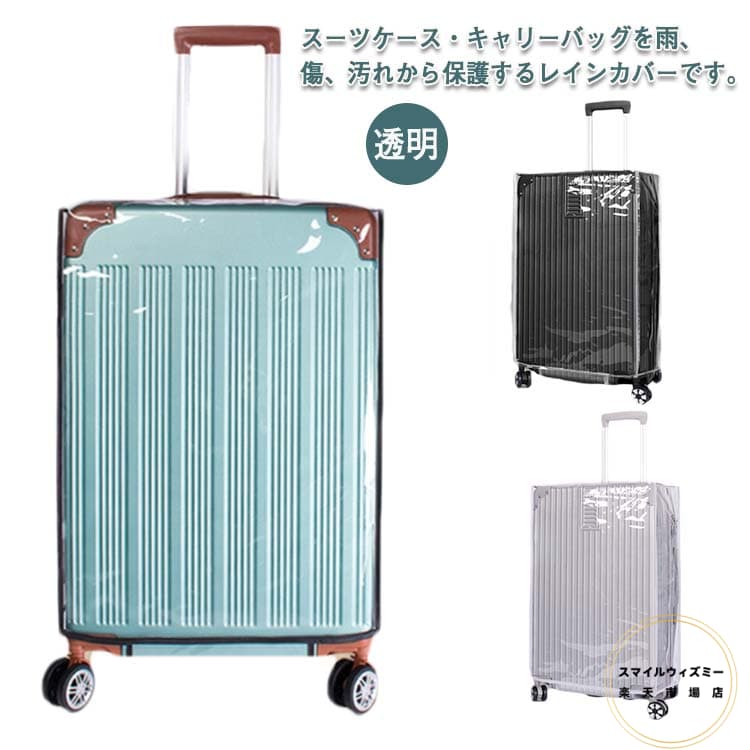 スーツケース・キャリーバッグを雨、傷、汚れから保護するレインカバーです。 すっぽり被せるだけの簡単設計! 透明なので、スーツケースが本来持っているデザイン性を活かしてくれます。 ビニール製なので濡れてもサッと拭くだけお手入れ簡単。 折りたたんでコンパクトに! 海外旅行、国内旅行、出張、修学旅行など、軽くてコンパクトなので、常にスーツケースに収納しておけば、出先での急な雨などにも安心です。 スーツケースにピッタリなサイズを選択できます。おすすめのクリアカバーです! サイズ 18インチ 20インチ 22インチ 24インチ 26インチ 28インチ 30インチ サイズについての説明 サイズ: 18インチ:高さ43-48cm×幅28-32cm×厚さ20-22cm 20インチ:高さ47-51cm×幅31-38cm×厚さ21-24cm 22インチ:高さ50-55cm×幅36-40cm×厚さ22-25cm 24インチ:高さ54-60cm×幅40-41cm×厚さ24-28cm 26インチ:高さ59-64cm×幅44-46cm×厚さ27-30cm 28インチ:高さ63-69cm×幅48-50cm×厚さ29-31cm 30インチ:高さ70-75cm×幅53cm×厚さ31-33cm 素材 PVC 色 透明(ブラック) 透明(グレー) 透明(クリア) 備考 ●サイズ詳細等の測り方はスタッフ間で統一、徹底はしておりますが、実寸は商品によって若干の誤差(1cm〜3cm )がある場合がございますので、予めご了承ください。 ●製造ロットにより、細部形状の違いや、同色でも色味に多少の誤差が生じます。 ●パッケージは改良のため予告なく仕様を変更する場合があります。 ▼商品の色は、撮影時の光や、お客様のモニターの色具合などにより、実際の商品と異なる場合がございます。あらかじめ、ご了承ください。 ▼生地の特性上、やや匂いが強く感じられるものもございます。数日のご使用や陰干しなどで気になる匂いはほとんど感じられなくなります。 ▼同じ商品でも生産時期により形やサイズ、カラーに多少の誤差が生じる場合もございます。 ▼ 2,128円 税込 送料込 カードOK スマイルウィズミー楽天市場店 ![]() | ||