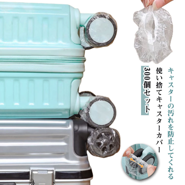 300個セット!キャスターの汚れを防止してくれる使い捨てキャスターカバー。簡単装着で車や室内の汚れを防止します。ゴムがついており、キャスターにサッと取り付け可能。旅行後すぐに使えて便利です。 サイズ F サイズについての説明 伸縮前:5x1.9cm 伸縮後:14x1.9cm 素材 PE 色 透明 備考 ●サイズ詳細等の測り方はスタッフ間で統一、徹底はしておりますが、実寸は商品によって若干の誤差(1cm〜3cm )がある場合がございますので、予めご了承... 1,149円 税込 送料込 カードOK RUSHUP楽天市場店 ![]() | ||