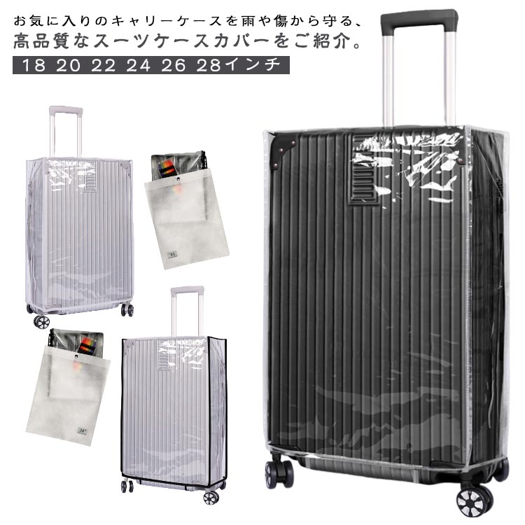 【商品説明】 ・スーツケースを汚れや雨、擦り傷から守る透明なカバーです。 ・カバーをケースの上から被せて、底部のマジックテープを止めるだけなので簡単に装着できます。 ・上部と側面のハンドル部分にはホールがあるのでカバーをしたままでもハンドルを使用することができます。 ・使用しないときは折りたたんでコンパクトにすることができます。 【商品仕様】 素材 PVC サイズ Mサイズ(22インチ) カラー クリア ※商品改良の為、デザインが異なる場合があります。 ※お使いの端末により、実際のカラーと異なって見える場合がございますのでご了承ください。 当店は他の販売サイトとの併売品があります。 ご注文が集中した時、システムのタイムラグにより在庫切れとなる場合があります。 その場合はご注文確定後であってもキャンセルさせて頂きますのでご了承の上ご注文下さい。 751円 税込 送料込 カードOK Pay Off Store ![]() | ||