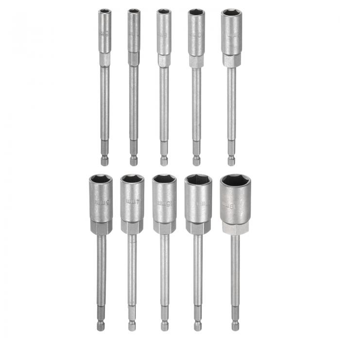 深めのスリーブは、握り力、安定性、トルク耐性、耐摩耗性を向上させます。六角形のデザインは、しっかりとした握りと効果的なトルク伝達を実現し、ツールからファスナーへの効果的なトルク転送を助けます。さらに、このナットドライバードリルビットツールの延長設計は、狭いスペースでのリーチとアクセスを向上させ、幅広いアプリケーションを精密かつ容易に処理できるようにします。