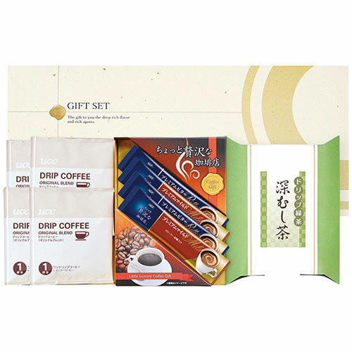 2501. AGF AGF・UCCコーヒー・ドリップ緑茶詰合せ AGF・UCCコーヒー・ドリップ緑茶詰合せ【深むし茶・UCCドリップコーヒーオリジナルブレンド・AGFコーヒープレミアム】 2616-023 AGF AGF・UCCコーヒー・ドリップ緑茶詰合せ 甘い香りが特徴のまろやかな味わいのAGFコーヒープレミアムマイルド、しっかりとした苦味とコク深い味わいが特徴のAGFコーヒープレミアムビター、コクのある苦味とまろやかな味わいのUCCドリップコーヒー。本格的なお茶を急須無しでお楽しみいただけるドリップタイプの深蒸し茶の詰合せです。 メーカー品番 : ADB-20 内容物 : 深むし茶(3g×4袋)1箱・UCCドリップコーヒーオリジナルブレンド7g×4袋・AGFコーヒープレミアム(マイルド・ビター各7g×2本) 賞味期限 : 製造日より常温約360日 アレルゲン : 乳成分 生産国 : 日本 箱サイズ : 42×20×3cm 箱入重量 : 285g 2,331円 税込 送料込 カードOK EMBL 楽天市場店 ![]() | ||