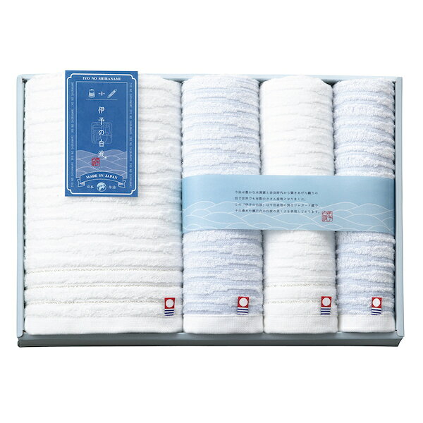 〇商品名:伊予の白波 タオルセット IY2050 B4〇商品サイズ:ウォッシュタオル330mm×350mm・フェイスタオル330mm×750mm・バスタオル600mm×1100mm〇商品内容:バスタオル×1・フェイスタオル×2・ウォッシュタオル×1〇箱サイズ:箱245×350×50mm〇材質:綿100%〇商品説明:水の湧き出ずる国、伊予。 今治は、その古称の由来のように豊かな水資源と奈良時代から築き上げた織りの技で、世界でも有数のタオル産地となりました。この「伊予の白波」は、今治の誇るジャガード織でその湧水や瀬戸内の白波の美しさを表現しております。 伊予 伊予とは今治の古称です。一説では古代人は湧水の事を「いゆ」と呼んでおり、これが「いよ」に転じました。水の湧き出ずる所は、特別な地として扱われるようになり地名として広まったとも言われています。※メーカー都合により、デザイン・内容等が変更になる場合がございます。 ※お買い上げ明細書のペーパーレス化について※ 当店では、環境への配慮と個人情報保護の観点から「お買い上げ明細書」の同梱を廃止いたしました。 ご注文内容は当店からの商品発送完了メールまたはご購入履歴よりご確認くださいますようお願い申し上げます。 メーカー希望小売価格はメーカーカタログに基づいて掲載しています 3,300円 税込 送料別 カードOK caprice.Gift ![]() | ||