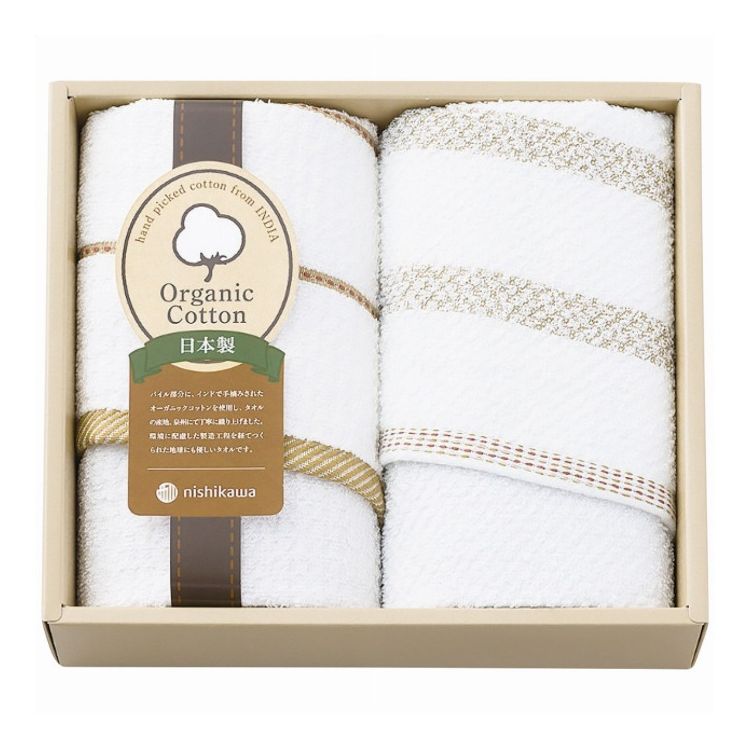 2565. 西川 オーガニックコットンフェイスタオル2枚セット nishikawa ギフト 贈り物 贈答品 西川 オーガニックコットンフェイスタオル2枚セット nishikawa ギフト 贈り物 贈答品 【商品詳細】パイル部分に、インドで手摘みされたオーガニックコットンを使用し、タオルの産地「泉州」にて丁寧に織り上げました。環境に配慮した製造工程を経て作られた、地球にも優しいタオルです。現品サイズ・内容:29×75cmフェイスタオル2枚・パイル:綿100%(オーガニックコットン)・地糸:綿100%・[日本製]製造国:日本【送料について】北海道、沖縄、離島は送料を頂きます。 2,200円 税込 送料別 カードOK リコメン堂生活館 ![]() | ||