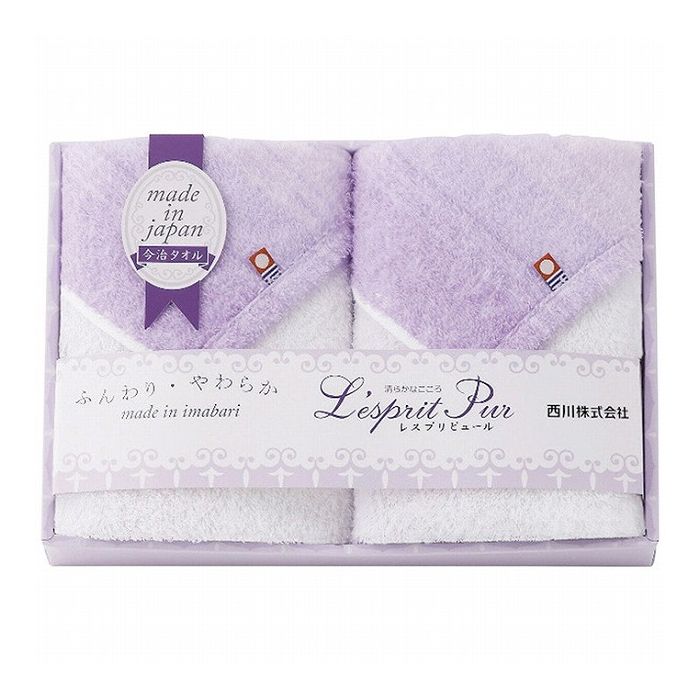 【商品詳細】フランス語で『清らかなこころ』を意味する、レスプリピュール。純真な想いからくる清らかな心のイメージを清楚なパープルのグラデーションカラーを使って、ふんわりとやわらかなタオルギフトにしました。日本のタオルの産地「今治」で丁寧に織り上げられた吸水性の高いタオルです。現品サイズ・内容:34×75cmフェイスタオル2枚・綿100%・[日本製]製造生産地:日本【送料について】北海道、沖縄、離島は送料を頂きます。 2,750円 税込 送料別 カードOK リコメン堂生活館 ![]() | ||