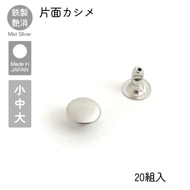 マットシルバーの片面カシメ(並足・長足)となります。 鞄や革小物の留め金具としておすすめです。 マットシルバーは頭部分に特殊な艶消し加工を施したもので、アンティーク感のある輝きが特徴です。 革との相性がよく、マットな質感が高級感を引き立たせます。 全サイズ:小(頭6mm)中(頭7mm)大(頭9mm) サイズ 小 中 大 他商品ページはこちらから 素材 鉄製 加工 マット加工 産地 日本製 注意事項 ※手作業で製造しておりますので、仕上がりや寸法には多少の個体差があります。 ※在庫反映上の都合により、既に在庫切れの場合があります。 ※複数別口注文の場合、同梱にてお届けする場合があります。 ※商品画像は、モニターによって実際の色合いと異なる場合があります。 180円 税込 送料別 カードOK レビュー1件 レザークラフトLewes ![]() | ||