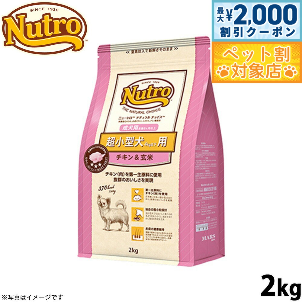 商品名ニュートロ ナチュラルチョイス ドッグフード 超小型犬用 成犬用 チキン&玄米ブランドナチュラルチョイス原材料チキン(肉)、チキンミール、オートミール、エンドウマメ、玄米、鶏脂*、ラムミール、大麦、粗挽き米、米糠、サツマイモ、タンパク加水分解物、ビートパルプ、亜麻仁、リンゴ、ブルーベリー、ニンジン、マリーゴールド抽出物、ビタミン類(A、B1、B2、B6、B12、C、D3、E、イノシトール、コリン、ナイアシン、パントテン酸、ビオチン、葉酸)、ミネラル類(カリウム、クロライド、セレン、ナトリウム、マンガン、ヨウ素、亜鉛、鉄、銅)、アミノ酸類(タウリン、メチオニン)、酸化防止剤(ミックストコフェロール、ローズマリー抽出物、クエン酸)*ミックストコフェロールで保存賞味期限製造から12か月カロリー370kcal/100g生産国アメリカ 成分値:タンパク質 25.0%以上、脂質 16.0%以上、粗繊維 4.0%以下、灰分 10.0%以下、水分 10.0%以下、セレン 0.35 mg/kg以上、ビタミンE 400 IU/kg以上、ビタミンC 100 mg/kg以上、オメガ6脂肪酸 2.0%以上、オメガ3脂肪酸 0.2%以上、タウリン 0.2%以上成犬用総合栄養食:本品は、ペットフード公正取引協議会の定める分析試験の結果、総合栄養食の基準を満たすことが証明されています。AAFCO栄養基準:本品は、AAFCO(米国飼料検査官協会)規定の分析試験により、成犬の健康維持に適したバランスの良い総合栄養食であることが証明されています。メーカー名マース ジャパン リミテッド 3,406円 税込 送料別 カードOK レビュー38件 コジコジ ![]() | ||