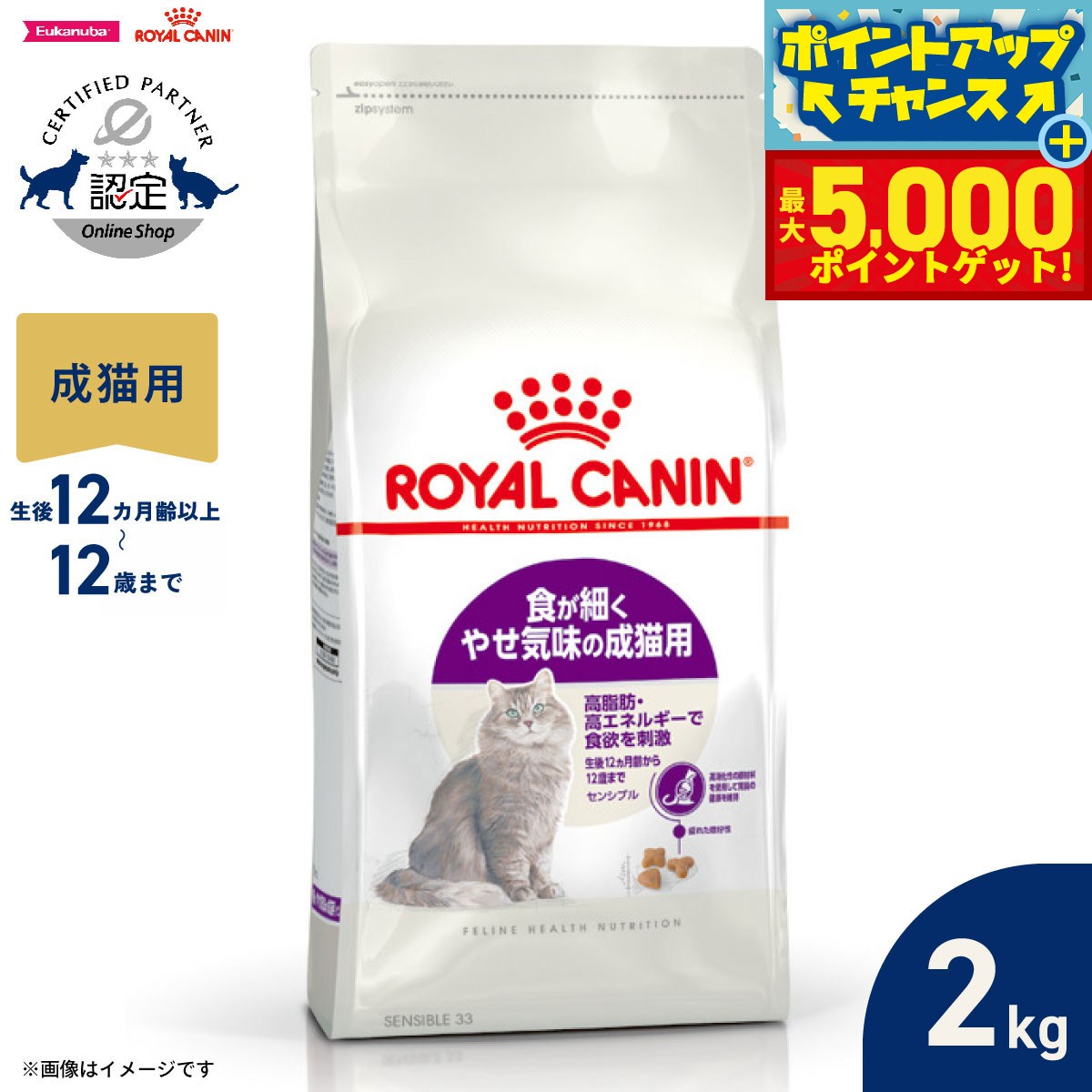 メーカー:ロイヤルカナン品番:センシブル15 猫【胃腸が敏感な成猫用】から【食が細く やせ気味の成猫用】の訴求内容へ変更しました。栄養成分の変更はございませんので、「胃腸が敏感な成猫用」としてお買い求めいただいていた方も引き続き本品をお使い頂けます。 高タンパクな栄養バランスで食欲を刺激!ロイヤルカナン FHN センシブル 食が細く やせ気味の成猫用 15kg 正規品タイプドライフード機能総合栄養食ライフステージ1〜12歳までの成猫特長●胃腸が敏感な猫は柔らかい糞便をする傾向があります。<センシブル>は、健康的な消化をサポートするために独自の栄養成分(L.I.P.*)と、プレバイオティックス(フラクトオリゴ糖)を配合し、健康な腸内細菌のバランスを整えます。 *L.I.P.:消化率90%以上の超高消化性タンパク(ロイヤルカナン調べ) ●それぞれ異なる形状の3種類のキブル(粒)と厳選されたフレーバーが、猫の食欲を刺激します。 ●高エネルギー密度に調整することにより食事量を減少させ、胃腸が敏感な猫の消化にかかる負担を軽減します。 ●成猫の健康な泌尿器を維持するためにミネラルバランスを調整しています。内容量15kg原材料肉類(鶏、七面鳥、ダック)、米、動物性油脂、超高消化性植物性タンパク(消化率90%以上)、小麦粉、コーン、加水分解タンパク(鶏、七面鳥)、小麦、コーングルテン、酵母および酵母エキス、加水分解タンパク(鶏、七面鳥、魚)、ビートパルプ、魚油(オメガ3系不飽和脂肪酸〔EPA+DHA〕源)、植物性繊維、大豆油、塩化アンモニウム、フラクトオリゴ糖、アミノ酸類(タウリン)、ゼオライト、ミネラル類(Cl、K、Ca、Na、Zn、P、Mn、Fe、Se、Cu、I)、ビタミン類(コリン、E、C、ナイアシン、ビオチン、B2、パントテン酸カルシウム、A、B1、B6、B12、葉酸、D3)、酸化防止剤(ミックストコフェロール、ローズマリーエキス)保証成分たんぱく質:31.0%以上、脂質:20.0%以上、粗繊維:2.6%以下、灰分:8.5%以下、水分:6.5%以下、食物繊維:6.3% ●ビタミン《1kg中》 ビタミンA:23,000IU/kg、ビタミンD3:1000IU/kg、ビタミンE:610mg/kg、ビタミンC:300mg/kg ●ミネラル カルシウム:1.10%、リン:1.00%、ナトリウム:0.50%、マグネシウム:0.08% ●その他内容成分 オメガ6系脂肪酸:4.90%、オメガ3系脂肪酸:0.90%、EPA+DHA:0.30%、タウリン:0.20%原産国韓国カロリー428kcal/100g1日の給与量●商品画像の給与表を参考に、1日の給与量を1〜数回に分けてそのまま与えてください。 ●ここに表示されている給与量はあくまでも目安です。個体差や活動量に応じて調整を行ってください。 ●常に新鮮な水を飲めるようにしてください。ご注意※本品は1歳から12歳までの猫用です。対象年齢以外の猫には与えないでください。 ※当社では多くのお客様にご購入いただくため、転売行為を目的としたご注文に関してはお断りをさせていただいております。大量のご注文や、過剰な複数回のご注文に関しては、キャンセルさせていただく場合があります。ロイヤルカナン 猫 ライトウェイトケア 減量したい成猫用 85g ウェット FHN−WET 9003579308769 お一人様5点限りロイヤルカナン 猫 FHN−WET ステアライズド 成猫用 85g 正規品 9003579311301 お一人様5点限りロイヤルカナン 猫 セイバーエクシジェント 成猫用 400g 3182550717120 お一人様5点限り ジップ無しロイヤルカナン 猫 プロテインエクシジェント 成猫用 400g 3182550767149 お一人様5点限り ジップ無しロイヤルカナン 猫 センシブル 食が細く やせ気味の成猫用 400g 3182550702263 お一人様5点限り ジップ無しロイヤルカナン 猫 センシブル 食が細くやせ気味の成猫用 4kg 3182550702331 お一人様5点限り ジップ付ロイヤルカナン 猫 センシブル 食が細く やせ気味の成猫用 2kg 3182550702317 お一人様5点限り ジップ付 … catbig5 sfset _neko 猫用品 ドライフード ロイヤルカナン royalcanin DF nos1003 cat_predry onaka_taiou seinekoyou プレミアムフード NKB 20140306 センシブル 胃腸がデリケートな猫用 1〜10歳まで 15kg 猫 フィーライン ヘルス ニュートリション sp lcnctyhtok228 cpnlcnctyh220 ★RC bnr1805_top_cat カリカリ opa2_choku 吐き戻し軽減 嘔吐 ゲロ 吐き戻し 軽減 減らす bnr2308rcnpoi ねこ 猫用 ねこ用 キャット cat 猫フード キャットフード ペットフード フード 餌 エサ ごはん ドライ 総合栄養食 成猫 成猫用 食が細く やせ気味の成猫用 食が細い やせ気味 胃腸 敏感 bnr2407rcnpup melma2409ityoucat line2510rcncoupon■この商品をお買い上げのお客様は、下記商品もお買い上げです。※この商品には付属しません。■ロイヤルカナン 猫 ライトウェイトケア 減量したい成猫用 85g ウェット FHN−WET 9003579308769 お一人様5点限りロイヤルカナン 猫 FHN−WET ステアライズド 成猫用 85g 正規品 9003579311301 お一人様5点限りロイヤルカナン 猫 セイバーエクシジェント 成猫用 400g 3182550717120 お一人様5点限り ジップ無しロイヤルカナン 猫 プロテインエクシジェント 成猫用 400g 3182550767149 お一人様5点限り ジップ無しロイヤルカナン 猫 センシブル 食が細く やせ気味の成猫用 400g 3182550702263 お一人様5点限り ジップ無しロイ