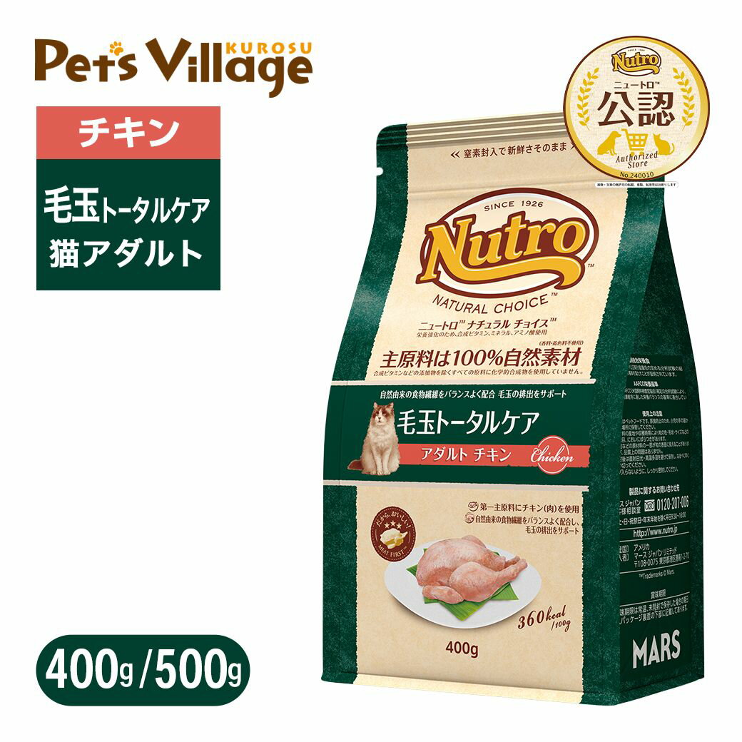 毛玉が気になる愛猫のために、高品質な自然由来の食物繊維をバランス良く配合し、毛の排出をサポート。 また、皮膚・被毛や腸内環境*の健康維持に配慮しています *食物繊維含有 ニュートロTM ナチュラル チョイスTM キャットドライフードは厳選した自然素材を使用しています。厳しい独自の検査基準を設け、原材料の品質、均一性、安全性の確保に向けて厳格な検査を行っています。世界のペット栄養学をリードするウォルサム研究所の知見を基に、猫のライフスタイルに合わせて、最適な素材、... 1,272円 税込 送料別 カードOK レビュー41件 ペッツビレッジクロス ![]() | ||