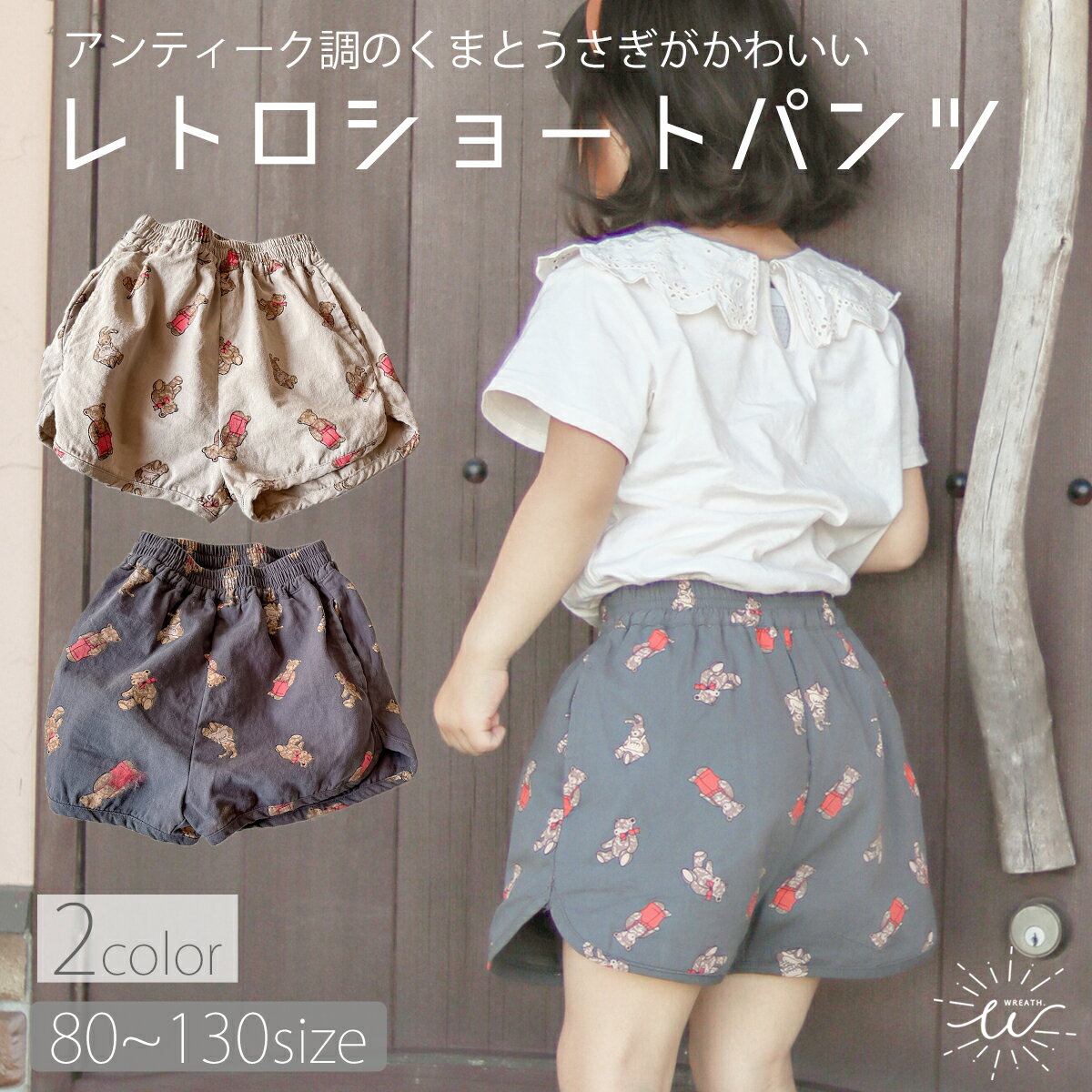 ショートパンツ キッズ 女の子 男の子 ハーフパンツ ショーパン 短パン ウエストゴム くま うさぎ ボトムス 子供服 おしゃれ 子ども服 コットン かわいい 80cm 90cm 100cm 110cm 120cm 130cm ボトム パンツ ジュニア 子供用 半ズボン ベージュ グレー 韓国 韓国子供服 シンプル 美脚 ゆるっとしたシルエットのショートパンツ。アンティーク調のくまとうさぎ柄がポイント。しっかりとした綿100%生地で着まわしてもへたりにくく着心地も抜群。両サイドポケット付き。ティッシュやハンカ... 1,300円 税込 送料込 カードOK レビュー8件 子供服 WREATH(リース) ![]() | ||