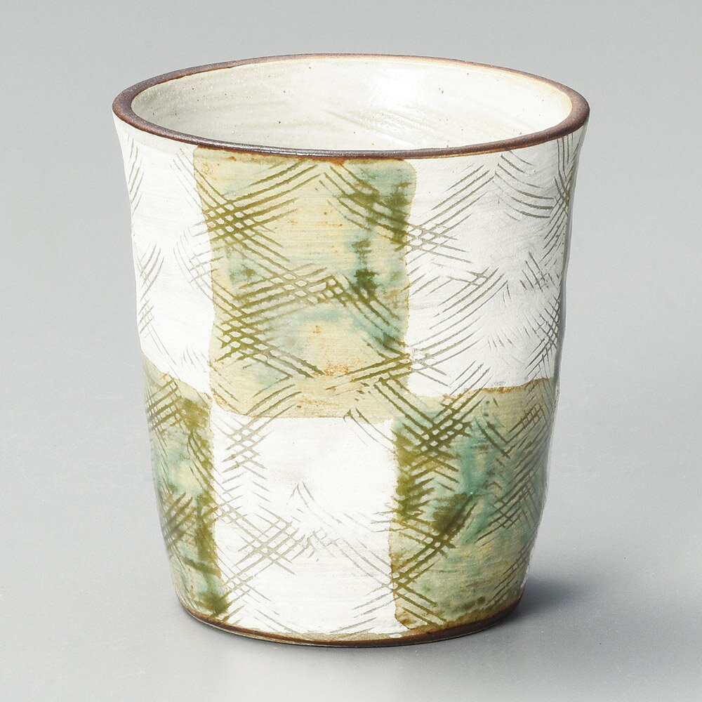 1257. 【B級品】織部吹黄茶 六兵衛フリーカップ サイズ直径85mm×高さ82mm約160g容量 約160cc満水容量 約210cc等級説明この商品は、B級品です。鉄粉・歪み・色むら・研磨痕などがあります。在庫説明この商品は、弊社在庫商品です。通常、即日〜2営業日で発送いたします。※食器(陶器・磁器)の性質上、色むら・若干のサイズ誤差など、製品毎に多少の差異が生じますので、あらかじめご了承願います。※商品の色調は実物と異なる場合もありますので、あらかじめご了承願います。... 440円 税込 送料別 カードOK やきもの 梅屋 ![]() | ||