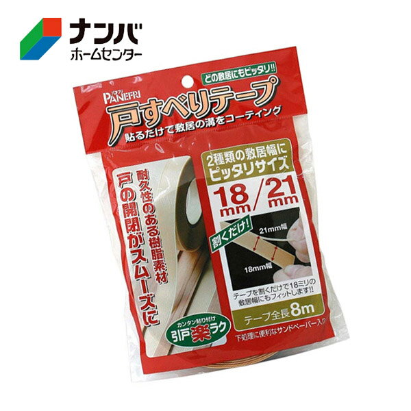 2358. 貼るだけで敷居の溝をコーティング! 2種類の敷居に対応。 【パネフリ工業】建具 家具 脚まわり 戸すべりテープ 割くだけ 18mm・21mm 併用タイプ 3.8m【PLE-11261HV080】 【仕様】 ●幅:18mm幅/21mm幅 ●長さ:8.0m巻 ●カラー:木目調 ●素材:ポリエチレン・両面粘着テープ 【商品の特長】 ●敷居溝に貼るだけで、障子やふすまの開閉をスムーズにする木造建築に合う木目調の裏面粘着付き樹脂製テープです。 ●21mm幅の敷居に使うときはそのまま、18mmの敷居に使うときは切り込みに沿って割くことで対応サイズを変えることができます。 ●耐久性のある樹脂製です。 ●敷居溝に貼るだけで、すべりの悪くなった障子やふすま、重い建具の開閉がス... 877円 税込 送料別 カードOK ナンバ 楽天市場店 ![]() | ||