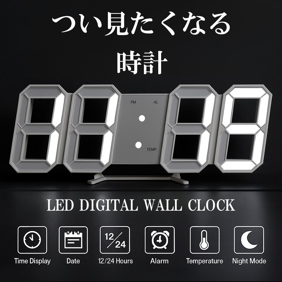 3D 置き時計 掛け時計 デジタル LED 目覚まし時計 壁掛け時計 置時計 ウォール クロック おしゃれ 韓国 インテリア 温度表示 自動調光 置時計 掛け時計 置き掛け兼用のLEDデジタル時計です。スタイリッシュなデザインでインテリアに彩りを与えます。シンプルなのに機能は盛りだくさん!自動調光で時刻に合わせた明るさに自動で調整します。朝は明るく爽やかに光り、優しく光り、妖しい光にも見えたりするので、つい見たくなってしまいます。夜、時計にふと目をやると時間の数字だけが浮かび上がって幻想的にも妖しげにも見えます。朝になると、とても爽やかで明るい光に変身してます。つい見たくなってしまう時計です。お部屋の雰囲気が変わり気分も変わります。置時計としても掛け時計としても使えて、シンプルでスタイリッシュなデザインだから職場やお店のインテリアにも!【内容】時計本体(スタンド取り外し可能)USB給電ケーブル 約 150cmボタン電池 (CR2032)取扱説明書 (日本語)※ボタン電池は設定を記憶するための電池です。電池だけでは動きません。 付属のUSBケーブルを使用して電源をお取りください。 電源アダプターは付属しません。 電波時計ではありません。※できるだけお安く提供するために、商品は専用の箱から出して簡易包装でお届けします。 記憶用ボタン電池を入れるので、電池部分のフタを一度開けさせて頂きます。 通電確認をするため、一度電源を入れさせて頂きます。 6 800円 税込 送料込 カードOK レビュー39件 デルデルSHOP ![]() | ||