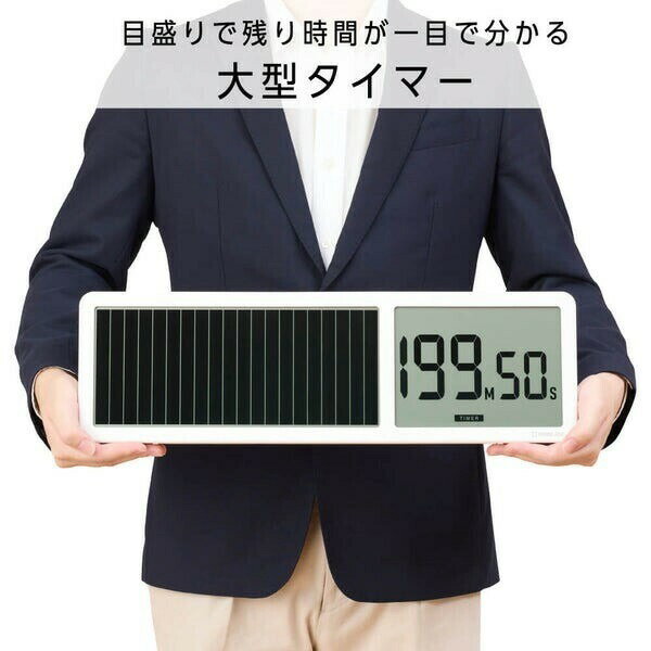 ビジュアルバータイマーの大型サイズが新登場! バーの目盛りで残り時間が一目で分かる大型タイマーです。 通常計測モードとリピート計測モード、時計モードの選べる3つのモードを搭載。 大型サイズで視認性が良いため、学校や試験会場、オフィスの会議室などの広い場所での使用に最適です。 外形寸法:約515(W)×47(D)×157(H)mm 質量:約1,325g(乾電池含まず) 主な材質:ABS 表示形式:液晶デジタル タイマー桁数:5桁 目盛り個数:20個 タイマー:通常計測 カウントダウン:最大計測時間199分50秒 カウントアップ:最大計測時間199分59秒 リピート計測 カウントダウン:最大計測時間199分50秒 リピート数 :作業時間最大99回 休憩時間最大98回 アラーム:通常計測 約10秒 リピート計測 計測切り替わり時:約3秒 計測完了時:約10秒 時計:時計表示切り替え 24時間表示⇔AM/PM表示 時計精度 平均月差±30秒(常温中) 電源 :単3形アルカリ乾電池×3本(別売) ACアダプタ(AC0502)(別売) 電池寿命:約180日(1日10 秒×1 回アラーム作動時) 動作環境:温度0~45℃ 湿度30~80%(非結露) セット内容:本体、目盛り色分けシール、取扱説明書(保証書付) 17,820円 税込 送料込 カードOK 富士文具オンラインショップ ![]() | ||