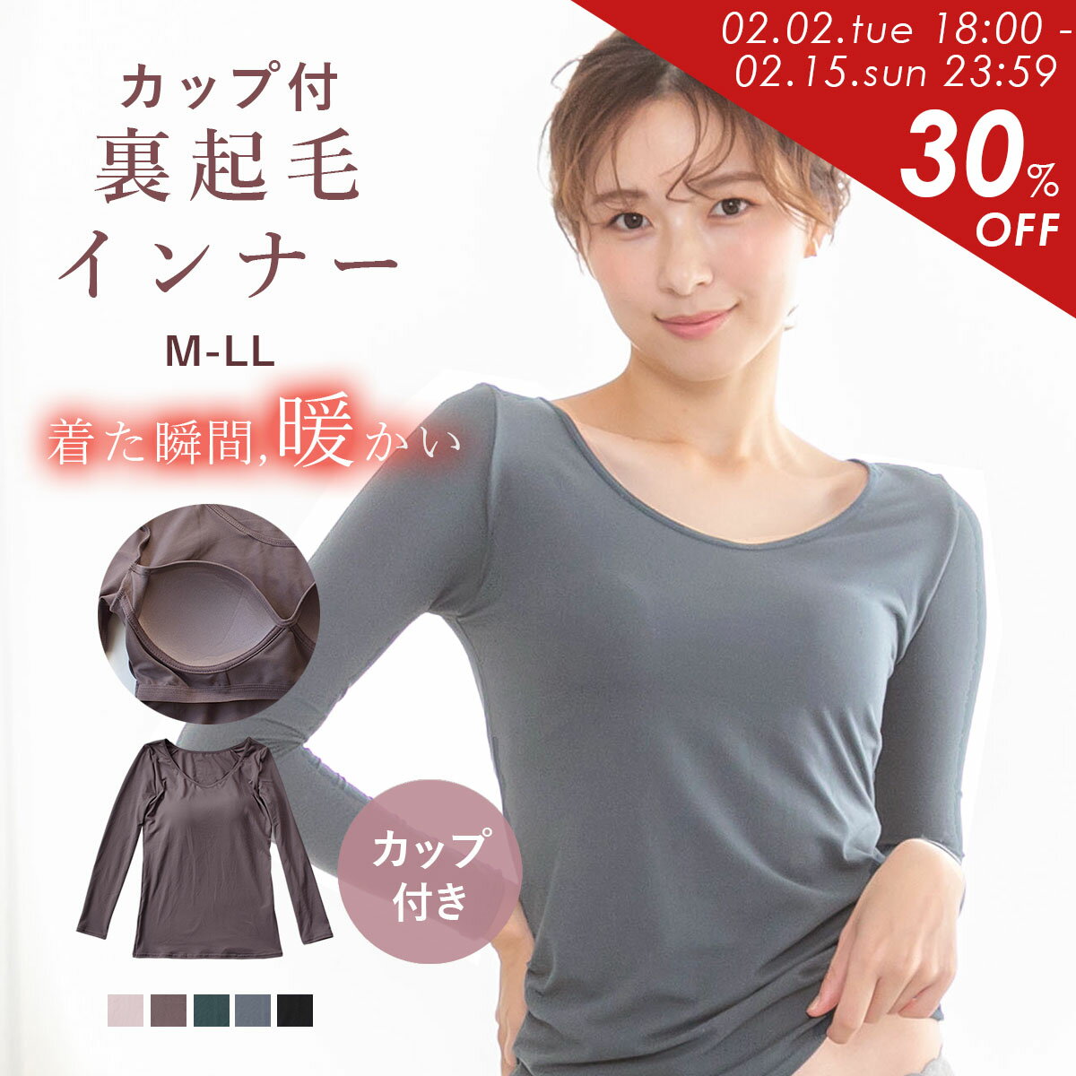 滑らかな肌触りの起毛にカップが付いた長袖インナー。 着た瞬間に暖かく、柔らかノンワイヤーカップで24時間着用したくなるアイテムです。 サイズ M(バスト79-87cm) L(バスト86-94cm) LL(バスト93-101cm) 素材 ポリエステル90% ポリウレタン10% 備考 ノンワイヤーソフトカップ付(取り外し不可) フロント、バックともにアンダーゴム入り ストレッチ:有 ※商品のカラーについて 商品のカラーはお客様のご覧になっている端末ディスプレイの関係上、実物のカラーと見え方が多少... 1,246円 税込 送料込 カードOK レビュー2件 ランジェリーと雑貨PINKPINKPINK ![]() | ||