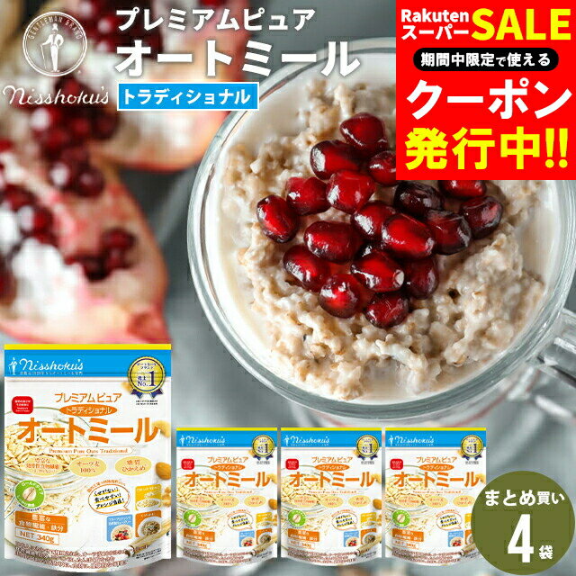 商品名 日食プレミアムピュアトラディショナルオートミール 商品内容 340g×4袋 商品説明 厚めのフレークでごはんのような食感にオーツ麦(えん麦)100%のオートミールトラディショナルスタイルは、厚めのフレークで1粒1粒がしっかりしているため、食感を楽しめるのが特徴です。オートミールには発酵性食物繊維(ベータ-グルカン)が豊富※に含まれ、糖質ひかえめ※で、その他に、鉄分やたんぱく質、ビタミンB1、2種類の食物繊維(水溶性及び不溶性)が含まれており、体にやさしい食品です。国内の工場で特殊焙煎しているため、香ばしく、くせがなく、そのままでもお召し上がりいただけます。毎日のごはん(主食)として、オートミールの栄養を手軽に摂ることができます。(※本品1食30gと玄米ごはん1膳(150g)を比較した場合) 原材料 オーツ麦(えん麦)※遺伝子組換えではない 原材料産地名 アメリカ又はオーストラリア又はカナダ又はフィンランド又はスウェーデン ※原産地の異なる原料が混合される事はございません 栄養成分表示 [栄養成分表示/1食(30g)あたり] エネルギー112kcal たんぱく質3.1g 脂質2.5g 炭水化物20.88g 糖質18.00g 食物繊維2.88g 食塩相当量0.0g カルシウム13mg 鉄1.4mg ビタミンB10.08mg ビタミンB60.03mg ビタミンE0.1mg 水溶性食物繊維1.25g 不溶性食物繊維1.63g 発酵性食物繊維 (ベータ-グルカン)1.0g アレルゲン オーツ麦の輸送・貯蔵・製造設備は小麦、大豆、その他の穀類にも使用しています。 賞味期限 商品ラベルに記載※賞味期限は未開封の状態で保存された場合です。開封後は早めにお召し上がりください。 保存方法 直射日光、高温多湿をさけて、常温で保存してください。 配送温度区分 常温便 梱包サイズ 250×240×h100mm※のし、包装全て対応不可 御用途一覧 にっしょく、日食、日本食品、オートミール、コーンフレーク、グラノーラ、シリアル、朝食、朝ごはん、軽食、間食、おやつ、ヘルシー、健康維持、ダイエット、食物繊維、栄養バランス、低カロリー、カロリーオフ、体調管理、健康管理、お取り寄せ、取り寄せ、まとめ買い、一括購入、一括、箱買い、ダイエットサポート、食事、改善、人気、フレーバー、種類、自分用、自宅用、自己消費、景品、粗品、単品トラディショナルスタイルは、厚めのフレークで1粒1粒がしっかりしているため、食感を楽しめるのが特徴です。オートミールには発酵性食物繊維(β-グルカン)が豊富に含まれ、糖質ひかえめで、その他に、鉄分やたんぱく質、ビタミンB1、2種類の食物繊維(水溶性及び不溶性)が含まれており、体にやさしい食品です。 4袋セットでお届けします 2,610円 税込 送料込 カードOK ギフト&グルメ北海道 ![]() | ||
