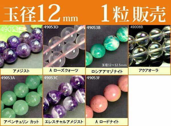 820. ≪1粒売り12mm≫●送料無料有●楽天最安値に挑戦●粒・バラ売り●ビーズ●天然石●パワーストーン● ≪1粒売り12mm≫●送料無料有●楽天最安値に挑戦●粒・バラ売り●ビーズ●天然石●パワーストーン● ※画像と同品質のものをお送りします。1粒販売 素材 天然石: アメジスト、 A ローズクォーツ、 ロシアアマゾナイト、 アクアオーラ 水晶、 アベンチュリン カット、 エレスチャルアメジスト(ケープアメジスト) サイズ 約:径12mm・±0.5mm ※ 多少の誤差はご了承下さい。 80円 税込 送料別 カードOK レビュー25件 品良楽天市場店 ![]() | ||