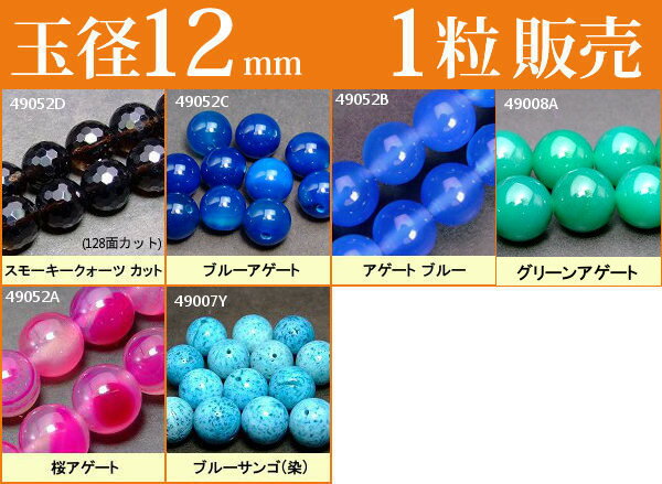1713. ≪1粒売り12mm≫●送料無料有●楽天最安値に挑戦●粒・バラ売り●ビーズ●天然石●パワーストーン● ≪1粒売り12mm≫●送料無料有●楽天最安値に挑戦●粒・バラ売り●ビーズ●天然石●パワーストーン● ※画像と同品質のものをお送りします。1粒販売 素材 天然石: スモーキークォーツ 128面 カット、 アゲート 水色(瑪瑙メノウ)、 アゲート ブルー、 グリーンアゲート(瑪瑙メノウ)、 桜 アゲート、 ブルーサンゴ(染) サイズ 約:径12mm・±0.5mm ※ 多少の誤差はご了承下さい。 75円 税込 送料別 カードOK レビュー13件 品良楽天市場店 ![]() | ||