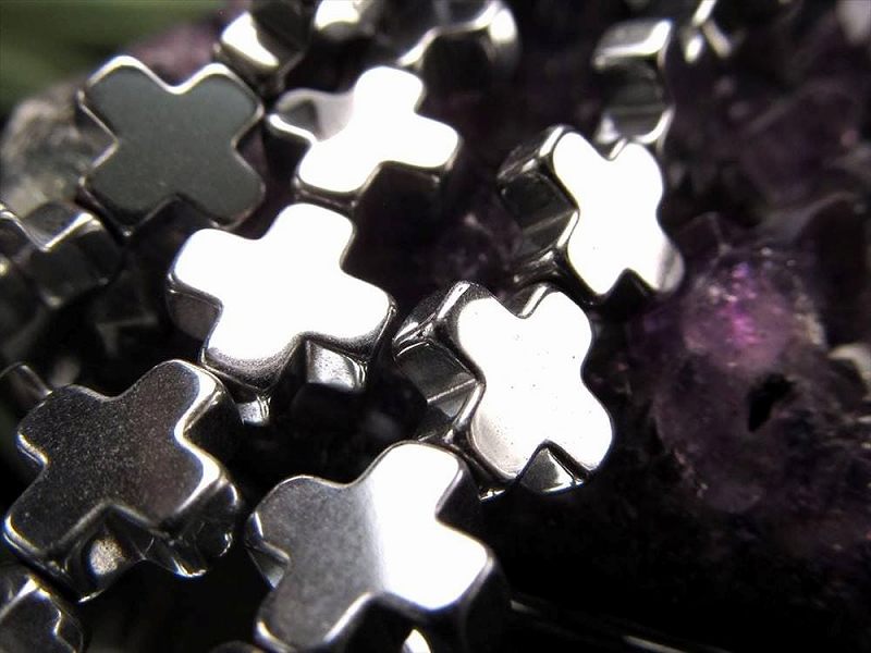 サイズ・重さなど 8ミリ前後(7.5-8.5ミリの範囲) 約37-39cm大量の場合は、気軽にお問い合わせ下さい! 産地・原産国 ブラジル産 グレードなど - 名称など - 商品説明 ヘマタイト 十字架クロス型ずっしりとした重みが感じられるヘマタイト!ギリシャ語で「血」を表す「heima」が名前の由来です。石をカットした断面や研磨した際に出てくる粉が血のような赤色のため、この名前が付けられました。お値打ち価格ですので、おまとめ買いがオススメです!【意味合い云われ・伝承等】ヘマタイトは身に着ける人の血液に力を与えるエネルギーを持つと云われています。赤血球の働きを活性化し、全身への酸素供給量が高まる事から、運動能力を高める効果や肉体労働をされている方には持久力を高める効果を持ちます。また、生命力を活発にし自信と勇気を与えると云われています。 ご注意事項 ※天然石ですので細かなカケや凹み、歪な部分やクラックなどがある場合があります。※天然石商品には色みに個体差があります。また出来る限り自然な色みになるよう撮影を心がけておりますが、お使いのディスプレイ環境によって表示される色みに差が出る場合があります。ご了承下さい。※連商品は一連状態での仕入れとなっておりますので、歪な珠が含まれていることがあります。※連商品は一連に付き、最大で3珠ほど仕様の異なる珠が混ざっていることがあります。ビーズ石の製造上の仕様ですのでご了承下さい。※サイズは目安です。細かな誤差が出る場合があります。 関連キーワード 天然石 パワーストーン 海外直輸入 バイヤー厳選 プレゼント ギフト メンズ レディース 卸し 卸価格 実店舗 ハンドメイド サイズ直し コムローズ comrose 750円 税込 送料別 カードOK レビュー9件 ComRose ![]() | ||