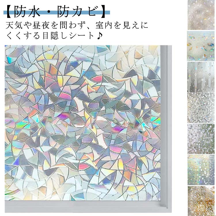 ◆◇◆人気の秘密◆◇◆ 【明るさを保つ窓ガラス目隠しシート】外からの視線を遮りながら、かつ、充分に外の光を室内に取り込めます。カーテンを閉めているときの閉塞感や窮屈感あるの暗い部屋から解放されるでしょう。透明窓ガラスを簡単に装飾ガラスに変身。部屋のおしゃれな演出と目隠しの両立できます。目隠し効果は高いです。 【紫外線遮断機能】ガラスを通して室内に入る大量の有害な紫外線を大幅カットできますし、眩しい直射日光を和らげて肌を刺すようなジリジリ感などの不快を抜き取り、快適な室内空間を演出します。またローリングや畳、カーペットなどの床材、家具の紫外線による日焼け、変色、劣化も軽減できる効果があります。 【3D魔法シリーズ】立体感の溢れる3D柄シリーズは貼る前に無色で極普通そうに見えますが、貼れば背景の色に馴染んだり、光、ライトや街灯が当たると屈折現象で虹色になってきらきらと輝いたりします。光加減によって昼、夕方、夜の表情が違う魔法の一枚! 【残り物なし&賃貸OK】接着剤不要(静電気吸着)なので、水だけで貼り付け、貼り直しOK!初心者の方でも簡単に貼れます。また、簡単に貼って剥がせ、残留物もなし、再利用も可能です。賃貸や社宅などにも大人気!貼る前には、フィルム裏の保護シールを剥がしたか、滑々なガラスに貼るかご確認ください。 【ガラス飛散防止&高い適用性】表面が滑らかなガラスであれば、家庭やオフィス、お店の窓、引き戸、テーブルに使用できます。防水防カビ、厚みもあるので、ガラス面を保護してより長く使えるガラスシートです。フィルムの吸着により、台風などで破れたガラス破片の飛散防止にも役に立ちます。 ◆◇◆注意事項◆◇◆ご覧のモニターの環境、撮影環境により実物と色味が異なって見える場合がございます。湿った状態で他のものと擦り合わせると色が移る恐れがあります。濃色品の洗濯時は、白色、淡色と分けて洗ってください。説明 【素材】PVC 【貼り付け方】 ※貼る前は必ず裏の剥離シートを剥がしてください。 ※大きな面積で貼る時、二人協力して貼ってください。 1.測定:測ったサイズより、縦も横も1cm大きめにフィルムを切ります。 2.掃除:ガラス面を綺麗に掃除します。 3.霧吹き:ガラスに水をたっぷりと吹き付けます。多くほど水をかけば、空気抜けがよりやすいです。 4.フィルム裏の剥離シートを剥がす:角の両面ともセロハンテープを貼ると容易に剥がせます。 5.貼る:端からフィルムの滑らかな面をガラス面に乗せて、ゴムヘラやタオルを使って中央から外に空気と水を押し出します。 6.仕上げ:はみ出し部分は線を引いて、ハサミで切ります。 端が浮いている場合:ヘアドライヤーで温めて、もう一度水を吹き付けて貼ってください。気泡が残る場合:その部分を剥がして、もう一度水を吹き付けて抜き出してください。 貼った後、すぐ剥がれた場合、以下4点をご確認ください。 1.剥離シートを剥がすこと 2.水をたっぷりかけること 3.平で滑らかなガラス面に貼ること 4.フィルムの滑らかな面をガラスに貼ること(3D柄面ではなく) 【ご注意】 全てのガラスの平滑面(平で滑らか)OK。ザラザラとしたすりガラス面や凹凸面に不適用。 保管条件のため、ビニール臭いが発生するかもしれません。気になる場合、風通しの良い所に24時間置いてなくなれます。 3,921円 税込 送料込 カードOK kcreate ![]() | ||