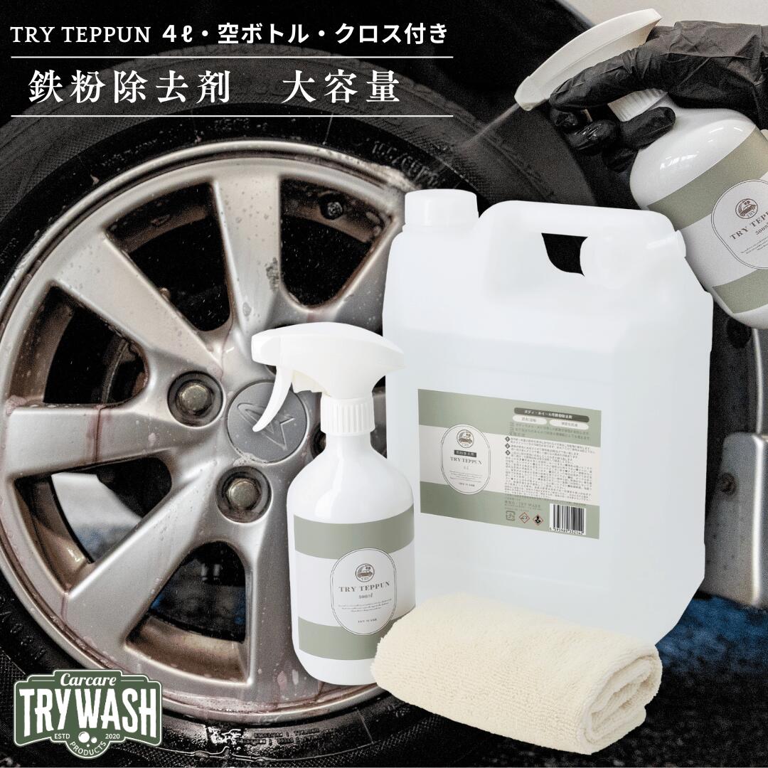 商品情報商品名トライテップン TRY TEPPUN内容量TRY TEPPUN 本体(4000ml 大容量タイプ)×1詰め替え用空ボトル(500ml)×1(ラベル付き/スプレーなし)専用クロス使用方法事前に車体・ホイールの砂汚れをしっかり洗い流す本製品を均等にスプレーで塗布(乾燥を避ける)鉄粉が紫色に変化するのを確認(約20秒程度)クロスでやさしく擦ることで除去効果を高める水でよく洗い流す必要に応じて数回繰り返す深い鉄粉には粘土やラバーパッドの併用を推奨注意事項必ず換気の良い場所で使用してください黄色い塗装車への使用は事前に目立たない部分で試験施工を行ってください(変色リスクあり)無塗装金属やクリア塗装のないパーツには使用不可乾燥を避け、施工中は常に湿らせた状態を保ってください洗車 鉄粉除去剤 強力クリーナー 業務用 大容量 4000ml 車用 ボディ ホイール サビ除去 紫に反応 泡立ち潤滑兼用 コーティング前処理 空ボトル付き TRY TEPPUN トライウォッシュ TRY WASH 紫に反応して鉄粉を強力分解!泡立ちで潤滑も兼ねた業務用4000ml コーティング前の下地処理に最適な大容量クリーナー 5 6,490円 税込 送料込 カードOK レビュー7件 TRY WASH ![]() | ||
