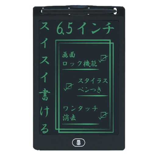 電子メモパッド LCDスクリーンにメモを書いたりお絵描きをしたりなど用途は色々。 画面を消去することで繰り返し使うことができます。 LCDスクリーン 約6.5インチのサイズでメモなどを書くことが可能。 会議でのメモや家族へのメッセージを書いたり、お絵描きなどアイディア次第で様々な用途に使用することができます。 簡単消去 本体裏側の消去ボタンを押すことで簡単に画面を消去することが可能。 何度でも書き込み・消去ができるので、ちょっとしたことなど何でもメモすることができます。 ロック機能 メモを消したくないときに便利な消去ロック機能を搭載。 ボタンを押しても消えなくなるので、誤って消してしまう心配がなくなります。 筆圧感知機能 線の太さを調整することができる筆圧感知機能が付いており、強めに書くと太い線になり、弱めに書くと細い線になります。 薄型 厚さが約5mmの薄型でカバンの中に入れても邪魔になりにくい厚みです。 電池交換対応 コイン型電池(CR2016)を採用しており、電池が切れた際は交換が可能。 電池切れで消せなくなった際も電池を交換することで、繰り返し使用できます。 ペンホルダー付き 本体の右側面とペンにマグネットが付いており、ペンを引っ付けて置いておくことができます。 サイズ(約):15.5cm×7.7cm×0.5cm 電池:CR2016 (テスト電池付属) 材質:ABS 他 入数:1個 重量(約):50g 製造国:中国 ※LCDスクリーンの一部分は色味が異なる場合が御座いますのでご了承下さい。 ※日本語説明書や撮影用の小物類は付属しておりません。 ※若干のサイズや重量の誤差はご了承ください。 ※画像・イラストはイメージです。ご閲覧の環境により、色味や雰囲気は異なります。 ※ご閲覧の環境等により、色味などが実際の商品と異なって見える場合がございます。 ※輸入商品の為、製造や輸送の際に生じる若干の小傷や汚れ等がある場合が御座います。 ※仕様は改善の為に予告なく変更する場合があります。 ※メール便での発送は(ポスト投函)代金引換、日付指定やあす楽の対応はできませんのでご了承ください。 730円 税込 送料別 カードOK ONE DAZE ![]() | ||