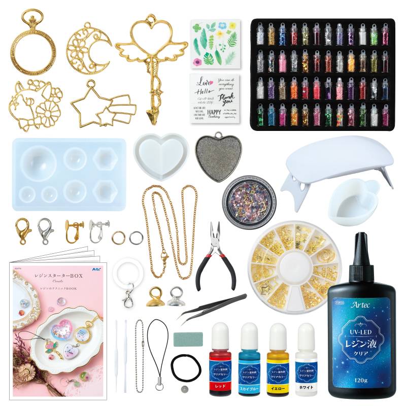 457. ArtecレジンスターターBOX 商品の説明 ⇒ 他のレジン用品を探す 商品説明:たっぷり使える!レジン120g入りの本格スターターセット!大容量120g入りのUVレジン液と、アクセサリーパーツ・ドライフラワー・シェルフレーク・空枠など多彩な素材を詰め込んだ豪華スターターキットです。作業に必要な工具も揃っており、届いたその日からネックレスやチャーム、小物づくりが楽しめるオールインワンセットで、初心者から経験者まで幅広く使えます。大容量レジン入りなので惜しみなく使えて、自由な発想で本格クラフトが楽しめます。お子様向けの誕生日やクリスマスプレゼントにもおすすめです。ArtecレジンスターターBOX レジンセット UVレジン カラー着色剤 スターターキット 大容量 アクセサリー作り ハンドメイド素材 シリコンモールド クラフト工具 シャカシャカレジン レジン初心者 封入パーツ 手作り アクセサリー キーホルダー レジン液120g 工作セット プレゼント クリスマス 誕生日 注意素材の色やデザインが異なる場合があります。商品サイズ(単位mm):225×175×45mmセット内容:大容量レジン120g×1、レジン用着色剤各10ml×4色(レッド、スカイブルー、イエロー、ホワイト)、UV-LEDライト×1、ジェルマット×1、調色スティック×2、調色カップ×2、研磨パッド×1、精密ピンセット×1、平ヤットコ×1、モールド型×2、透明フィルム×1、キラキラ小瓶×48、メタルパーツ(シルバー&ゴールド)×24、デザインフィルム×2、ミックスパーツセット×1、ミール皿×1、空枠×5、アクセサリー用金具セット(カニカン、丸カン、ヒートンキャップ、ネックレスチェーン、イヤリング金具、アンブレラマーカー、ボールチェーン、ストラップ、ヘアゴム)×1、レジンのテクニックブック×1重量(g):350材質:アクリル系光硬化樹脂、PET、合金、PU、合成樹脂、有機溶剤、ABS、PVC、特殊鋼(SK5)包装形態:ヘッダー付き箱入り販売単位:個生産国:中国パーティ・イベント衣装・コスチューム・ワークショップ・知育・おもちゃ・工作・自由研究・学校教材・教育・運動会・キット・備品・クラフト・アーテック/Artec 激安手芸用品通販店ウイングスだからできる問屋価格です ※工場からのお取り寄せになりますので、ご注文が確定してもタイミングにより売り切れ・入荷待ち状態である場合がございます。 ※お使いのディスプレイや環境によって画像のお色と異なる場合がございます。予めご了承お願いします。 ご注意 ※工場からのお取り寄せになりますので、ご注文が確定してもタイミングにより売り切れ・入荷待ち状態である場合がございます。 ※お使いのディスプレイや環境によって画像のお色と異なる場合がございます。予めご了承お願いします。 4,949円 税込 送料別 カードOK 手芸問屋ウイングス ![]() | ||