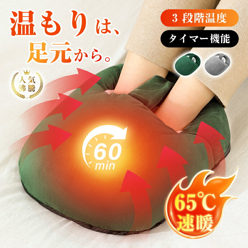 【PTC加熱芯 30S速暖!!】バージョンアップ!2021最新改良版のフットウォーマーは加熱芯や接続部分を強化され、耐久性が大幅にUP!市場で最長の2時間の加熱時間の足温器と比べて、弊社は8時間に延長します!弊社はコンセント式足温器で、USB式に比べて時間が待たずに早く加熱できるメリットがあり、30S速暖、加熱効果が抜群です。 すっぽりと足を包み込むデザインので、足首まで覆うことができます。サイズ:29 * 25.5 * 22.5cm【6段階温度調節、4段階タイマー、過熱保護】足温器は6段階温度調節と4段階タイマー機能が搭載します。2・4・6・8時間切りタイマーと自動OFF機能付きなので消し忘れが心配な人にも時間を決めて使いたい人にも人気があります。外出時などに電源を切り忘れても、安心!また、足温器には加温度の上がりすぎを防ぐ安全機能付きから、温度が高くなると、高温保護に入って、自動的に停止して、火事の心配はいりません。何度でもお使え、お財布に優しいです。温度調整できるヒーター付きなので自分好みの暖かさに出来ます。冷え性の方、ほんとにお勧めです。。【ふわふわ暖かい 手触りがいい生地】足元ヒーターの外側はふかふかな素材でできているので、とても触り心地がいいです。内部には熱が分散しやすく、冷空気を入れず、暖かい空気を逃がさない生地を使用しています。絶縁で安全性を保証されています。抗菌性と防臭性があり、毛が落ちにくくて耐摩耗性に優れ、乾燥もしやすいです、しっかり保温してくれます。中は底も上も全面もこもこで、冷える足元をしっかり保温します。【省エネ、取り外しカバー 保温・清潔に保つ】内部のカバーを取り外せ、手洗いまたは洗濯機で水洗 いでも可能です。お手入れが簡単で、常に清潔に保つことができます。 低電力設計で、エアコンと比べて、省エネで、時間につけっぱなしでも電気代が超安いです。【コンパクトサイズで持ち運び便利】薄くてコンパクトなので、どこでも持ち運びがやすく、使える足首ウォーマーです。職場で使用しても周りへ温度の影響を与えることもなく、周りを気にせず使えます。ほとんどの製品が家庭用の電源で使える機具なので、お湯や灯油などを準備する必要もありません。※足元ヒーターの温度は室温によって多少変わります。【使用場所&持ち運び便利】ソファでテレビ、本を見たいときにリラックスでき、机で勉強したり、パソコンの前で仕事をしたりするときに、足を冷やさず欠かせないものです。大人、子供それとも高齢者でも楽しめます。寒い冬でも暖かく快適過ごせます。ご両親や子供や恋人へプレゼントとしても最適です。コンパクトで軽量なデザインで持ち運びが可能です。【PTC加熱芯 30S速暖!!】バージョンアップ!2021最新改良版のフットウォーマーは加熱芯や接続部分を強化され、耐久性が大幅にUP!市場で最長の2時間の加熱時間の足温器と比べて、弊社は8時間に延長します!弊社はコンセント式足温器で、USB式に比べて時間が待たずに早く加熱できるメリットがあり、30S速暖、加熱効果が抜群です。 すっぽりと足を包み込むデザインので、足首まで覆うことができます。サイズ:29 * 25.5 * 22.5cm【6段階温度調節、4段階タイマー、過熱保護】足温器は6段階温度調節と4段階タイマー機能が搭載します。2・4・6・8時間切りタイマーと自動OFF機能付きなので消し忘れが心配な人にも時間を決めて使いたい人にも人気があります。外出時などに電源を切り忘れても、安心!また、足温器には加温度の上がりすぎを防ぐ安全機能付きから、温度が高くなると、高温保護に入って、自動的に停止して、火事の心配はいりません。何度でもお使え、お財布に優しいです。温度調整できるヒーター付きなので自分好みの暖かさに出来ます。冷え性の方、ほんとにお勧めです。。【ふわふわ暖かい 手触りがいい生地】足元ヒーターの外側はふかふかな素材でできているので、とても触り心地がいいです。内部には熱が分散しやすく、冷空気を入れず、暖かい空気を逃がさない生地を使用しています。絶縁で安全性を保証されています。抗菌性と防臭性があり、毛が落ちにくくて耐摩耗性に優れ、乾燥もしやすいです、しっかり保温してくれます。中は底も上も全面もこもこで、冷える足元をしっかり保温します。【省エネ、取り外しカバー 保温・清潔に保つ】内部のカバーを取り外せ、手洗いまたは洗濯機で水洗 いでも可能です。お手入れが簡単で、常に清潔に保つことができます。 低電力設計で、エアコンと比べて、省エネで、時間につけっぱなしでも電気代が超安いです。【コンパクトサイズで持ち運び便利】薄くてコンパクトなので、どこでも持ち運びがやすく、使える足首ウォーマーです。職場で使用しても周りへ温度の影響を与えることもなく、周りを気にせず使えます。ほとんどの製品が家庭用の電源で使える機具なので、お湯や灯油などを準備する必要もありません。※足元ヒーターの温度は室温によって多少変