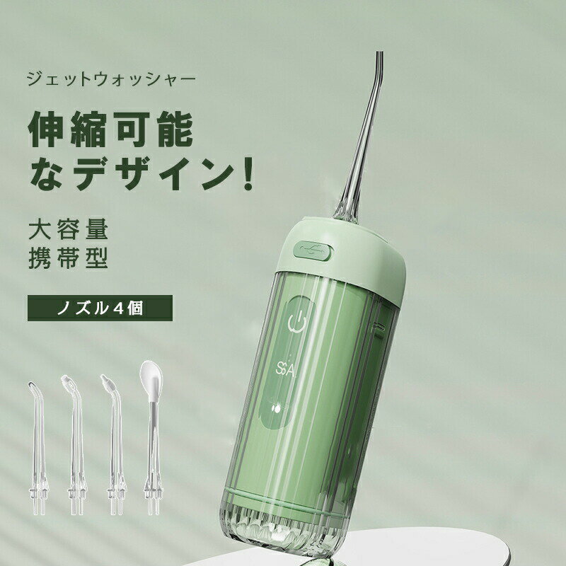 ノズルの先端からタンク内に貯めた水を噴射して口内を洗浄するものですが、水圧はかなり強く、歯に当てれば食べカスはもちろん、歯垢まで取ってくれます。日常的に歯や歯茎のケアを行って口内を清潔に保ちたい方は、ぜひ試してみてくださいね。人とのコミュニケーションにおいても、口臭のない健康なお口はとても重要ですよね。口腔洗浄器は、水を噴射して口の中を洗うという非常にシンプルな器具ですが、効果は抜群です。■■水圧によって舌の汚れを除去する舌磨きノズルを搭載■■超音波水流の微細な気泡によって、歯の表面についた汚れをはがして飛ばします。舌磨きノズルも搭載しており、舌の表面についた汚れも除去。歯だけでなく、舌のケアにも力を入れたい人におすすめです。■■本体をタンクに収納できて持ち運びしやすい■■本体とノズル部分をタンクに収納するとコンパクトになるため、自宅はもちろん職場や外出先などへの携帯用としても活躍するでしょう。1分間に約1600回の高速振動により、歯ブラシだけでは届かない箇所の汚れも除去します。本体はまるごと水洗いでき、清潔に保てます。コンパクトに持ち運んで、外出先でも歯のケアを怠りたくない人におすすめですよ。■■1回の充電で長く使える。お風呂でもOK■■バッテリーを内蔵した充電式のため、コンセントがない場所でも使えます。シンクまわりに置いても邪魔になりにくく、使わないときには収納してもかさ張らないところが魅力です。4段階で水圧モードを切り替えられて、歯ぐきの状態や好みに合わせたケアが可能です。本体はIPX7の防水設計で、充電口にも防水カバーがあるためお風呂でも活用できますよ。■■4種類のノズルで口臭対策や歯ぐきケアも■■歯周ポケット用?矯正用?舌クリーナー用など4種類のノズルが付属しており、用途に合わせた洗浄が可能です。4種類のモードを選択することで適した強さが選べます。■電源方式:充電式■タンク容量:約310ml■防水性能:IPX7▼ 関連キーワード ▼ジェットウォッシャー 口腔洗浄器 風呂 ランキング おすすめ 人気 洗浄機 超音波歯ブラシ ふろ 持ち運び 口コミ 歯科医 歯医者 最新 ジェット ウォーター 口腔衛生対策 原因 はみがき くち 水流 口腔 洗浄機 口内 歯 水流 水圧 高圧 電動 携帯 口腔洗浄機 超音波 口内洗浄機 歯間洗浄器 コンパクト 洗浄器 省スペース 予防 歯並び 悪い 歯石取り 歯槽膿漏 歯周ポケット はぐき 歯ぐき 臭い オ 虫歯予防 父の日 プレゼント ギフト gift 口臭 虫歯 矯正 ケア 歯間ブラシ 口腔洗浄器 高圧洗浄機 歯茎 歯ブラシ 高圧 口腔洗浄器 歯石 口腔 クリーニング 口腔洗浄器 口臭 口腔洗浄器 充電式 口腔洗浄器 おすすめ 10代 20代 30代 40代 50代 60代 コンパクト 口腔洗浄器 携帯 口腔洗浄器 歯周ポケット コンパクト デンタルケア 口腔洗浄器 矯正メーカー希望小売価格はメーカーサイトに基づいて掲載していますメーカー希望小売価格はメーカーサイトに基づいて掲載していますメーカー希望小売価格はメーカーサイトに基づいて掲載していますノズルの先端からタンク内に貯めた水を噴射して口内を洗浄するものですが、水圧はかなり強く、歯に当てれば食べカスはもちろん、歯垢まで取ってくれます。日常的に歯や歯茎のケアを行って口内を清潔に保ちたい方は、ぜひ試してみてくださいね。人とのコミュニケーションにおいても、口臭のない健康なお口はとても重要ですよね。口腔洗浄器は、水を噴射して口の中を洗うという非常にシンプルな器具ですが、効果は抜群です。■■水圧によって舌の汚れを除去する舌磨きノズルを搭載■■超音波水流の微細な気泡によって、歯の表面についた汚れをはがして飛ばします。舌磨きノズルも搭載しており、舌の表面についた汚れも除去。歯だけでなく、舌のケアにも力を入れたい人におすすめです。■■本体をタンクに収納できて持ち運びしやすい■■本体とノズル部分をタンクに収納するとコンパクトになるため、自宅はもちろん職場や外出先などへの携帯用としても活躍するでしょう。1分間に約1600回の高速振動により、歯ブラシだけでは届かない箇所の汚れも除去します。本体はまるごと水洗いでき、清潔に保てます。コンパクトに持ち運んで、外出先でも歯のケアを怠りたくない人におすすめですよ。■■1回の充電で長く使える。お風呂でもOK■■バッテリーを内蔵した充電式のため、コンセントがない場所でも使えます。シンクまわりに置いても邪魔になりにくく、使わないときには収納してもかさ張らないところが魅力です。4段階で水圧モードを切り替えられて、歯ぐきの状態や好みに合わせたケアが可能です。本体はIPX7の防水設計で、充電口にも防水カバーがあるためお風呂でも活用できますよ。■■4種類のノズルで口臭対策や歯ぐきケアも■■歯周ポケット用・矯正用・舌クリーナー用など4種類のノズルが付属しており、用途に合わせた洗浄が可能です。4種類のモードを選択することで適