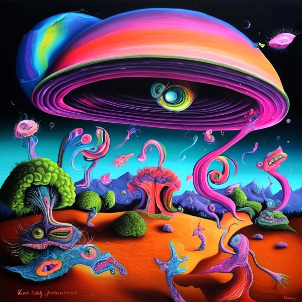 最初の商品画像がポスターの全体図です.2 番めの商品画像として中央部分の拡大図をのせています. 【GPT5/4o による解説】 (正確でない場合がありますので,ご注意ください.) この作品は鮮烈なネオンカラーと滑らかなグラデーションで異界の風景を描いています. 空に浮かぶ巨大な円盤状オブジェが画面中心を占め,その内側に連なる同心円や下方へ伸びる渦巻状の触手が視線を誘導します. 地面のオレンジと遠景の青紫が鋭い色彩対比を作り,枝分かれする有機的な樹や小さな生物的モチーフが遊び心と不安感を同時に刻んでいます. 作風は夢と現実の境界を曖昧にするシュルレアリスムの系譜を継ぎ,サルバドール・ダリの変容する形態やジョアン・ミロの有機的抽象の影響を感じさせます. さらに1960年代のサイケデリック美術やローブロウ(Lowbrow)絵画にも通じる鮮烈な色彩感覚と遊戯性があり,光沢ある滑らかな仕上げと細部の装飾的な線描が立体感と深度を与えて,鑑賞者に未知の生態系を覗き込む歓びを提供します. 【購入方法・サイズなどについて】 サイズはつぎのうちのいずれかを上記の商品リストで選択してください.いずれも正方形です.・500 mm × 500 mm. ・400 mm × 400 mm. ・300 mm × 300 mm. ・250 mm × 250 mm (紙は 300 mm × 300 mm.余白つき). ・200 mm × 200 mm. オンデマンドで印刷します (受注生産です) が,基本的に 1 週間以内に発送します. 300 mm と 250 mm のものは楽天,アマゾン,ニトリ,ハンズ,無印良品などで販売されている内寸 30 cm 角のフレームにちょうとおさまります. この商品にはフレームは付属せず販売もしていません. 【画像の制作方法】 制作者と AI (AI アート作成用のプログラム Stable Diffusion XL 1.0 (1024)) とからなるアートユニット カナブストラクド によるアートポスターです.そのプログラムに「Kanabstracd surrealism Delonay」ということば (prompt) をあたえて創造させました. 負のプロンプトとして「Mondrian」を指定しています. AI アートでは通常 A6 サイズ相当くらい (縦横 500〜1000 ピクセルくらい) の荒い画像しかつくれないので,超解像という技術をつかって原画より解像度を 4〜8 倍に (こまかく) しています. ただし,上の商品画像の解像度は原画と同程度なのでご注意ください. これらのポスターは通常の AI アートとはちがう独自の方法を使って作っています. AI アートは AI にプロンプト (または呪文) とよばれる英語の記述をあたえて作画した画像ですが, Stable Diffusion,DALL・E 2,Midjourney などの AI プログラムによって 2022 年に爆発的に普及しました. AI アートで望む画像を作るために通常は比較的細かい指示を与えます. しかしデイシンではおもに 1〜4 語程度の短いことばや造語を Stable Diffusion XL 1.0 (1024) を使用している OpenArt,NightCafe などのウェブサイトで使用して,そのプログラムがもつ知識をいかして自由に (ジェネラティブに,創発的に) 画像をつくらせています. コントラストの調整等はしていますが,描きなおさせたり加筆したりするようなことはしていません. こうやって作られる「意図しない」画像も「AI アート」とは呼ばれるものの,かならずしもアートとはいえないと考えています. しかし,思いもよらない画像や特定の画家風の部分がありながらその作品とはちがうスタイルの画像,模様やステンドグラスに埋め込まれた猫など,様々な興味ぶかい画像がつくれます. 【キーワード】 AIアート, AI画家, 画像生成AI, 人工知能アート, コンピュータアート, コンピュータ・アート, デジタルアート, メディアアート, Stable Diffusion, ジェネラティブアート, ジェネレーティブアート, 創発的, 生成的, アート・ジェネレータ, インテリア, ウォールアート, アートポスター, アートプリント, オリジナルポスター 【著作権に関する注記】 この画像は ISAP 手法にもとづいて AI が生成したものです.特定の現存作家または既存作品の模倣・再現を意図するものではありませんが,お気づきの点がありましたら info@dasyn.com にご連絡ください.AI を使って造った気軽に楽しめるアートポスター AI とともに描いた様々な絵でお部屋をかざってみませんか? AI アートでさまざまな絵画を創造しました.人だけでは描くのが難しいオリジナル作品をお求めやすい価格で提供します.壁にならべて貼ったり,気分にあわせて貼りかえてみることもできます. 1,600円 税込 送料別 カードOK デイシン プライム ![]() | ||