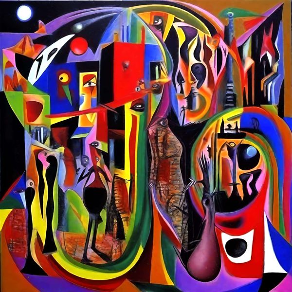 最初の商品画像がポスターの全体図です.2 番めの商品画像として中央部分の拡大図をのせています. 【GPT5/4o による解説】 (正確でない場合がありますので,ご注意ください.) この絵は,シュルレアリスムとキュビスムの影響を受けた作品のように見えます. 色彩の豊かさと形の歪みは,ダリやピカソの作品を思わせます. 抽象的な形状と鮮やかな色使いが,夢のような非現実的な世界を作り出しています. 目や顔のモチーフが多く見られ,観察者に対する視線を感じさせます. ... 1,620円 税込 送料別 カードOK デイシン プライム ![]() | ||