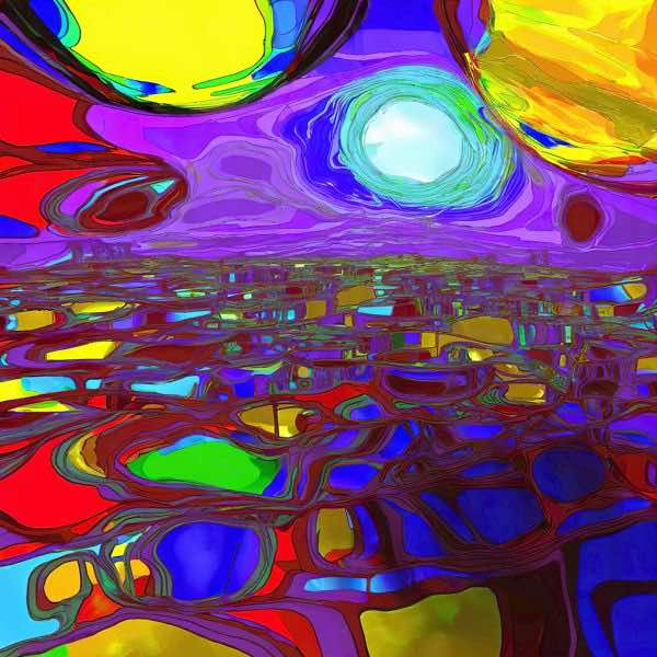 最初の商品画像がポスターの全体図です.2 番めの商品画像として中央部分の拡大図をのせています. 【GPT5/4o による解説】 (正確でない場合がありますので,ご注意ください.) 紫を主調に,天頂の渦巻く白い光源が画面全体のリズムを支配し,海原のような面が細胞膜めいて増殖しながら地平へと収束していく. 前景の網目状の輪郭はクロワゾネ風の硬い縁取りで,液体のきらめきとステンドグラスの平面性を同時に抱え込む. 黄と紫,赤と緑,補色同士がせめぎ合うため,視覚は常に明... 1,620円 税込 送料別 カードOK デイシン プライム ![]() | ||