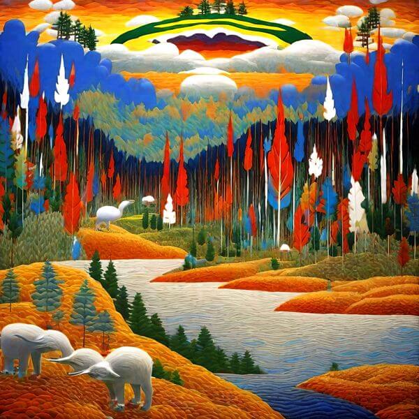 最初の商品画像がポスターの全体図です.2 番めの商品画像として中央部分の拡大図をのせています. 【GPT5/4o による解説】 (正確でない場合がありますので,ご注意ください.) この絵は,カナダのグループ・オブ・セブンの影響を受けたようなスタイルで描かれています. 特に,ローレン・ハリスやトム・トムソンの作品を思わせる色彩と構図が特徴的です. 鮮やかなオレンジや赤,青の色使いが,自然の壮大さと神秘性を強調しています. 雲や木々の形状は,抽象的でありながらも自然の要素を捉えており,幻想的な雰囲気を醸し出しています. 画面中央の川は,視線を奥へと導き,遠景の山々や空の広がりを感じさせます. 白い動物たちは,非現実的な存在感を持ち,絵全体に夢のような印象を与えています. 全体として,この作品は自然の美しさと神秘を探求し,観る者に深い感動を与えるものです. 【購入方法・サイズなどについて】 サイズはつぎのうちのいずれかを上記の商品リストで選択してください (一部のポスターを除いては正方形です).・594 mm × 594 mm (変形 S 12 号). ・480 mm × 480 mm. ・340 mm × 340 mm (変形 S 5 号). ・240 mm × 240 mm (S 2 号). オンデマンドで印刷します (受注生産です) が,基本的に 1 週間以内に発送します. なお,販売するのはポスターだけであり,写真のようなフレームは付属していません. また,フレームは販売していません. 【画像の制作方法】 制作者と AI (AI アート作成用のプログラム Stable Diffusion XL 1.0 (1024)) とからなるアートユニット カナ によるアートポスターです.そのプログラムに「Yasusi_Kanada Kandinsky」ということば (prompt) をあたえて創造させました. 負のプロンプトとして「Kandinsky」を指定しています. AI アートでは通常 A6 サイズ相当くらい (縦横 500〜1000 ピクセルくらい) の荒い画像しかつくれないので,超解像という技術をつかって原画より解像度を 4〜8 倍に (こまかく) しています. ただし,上の商品画像の解像度は原画と同程度なのでご注意ください. これらのポスターは通常の AI アートとはちがう独自の方法を使って作っています. AI アートは AI にプロンプト (または呪文) とよばれる英語の記述をあたえて作画した画像ですが, Stable Diffusion,DALL・E 2,Midjourney などの AI プログラムによって 2022 年に爆発的に普及しました. AI アートで望む画像を作るために通常は比較的細かい指示を与えます. しかしデイシンではおもに 1〜4 語程度の短いことばや造語を Stable Diffusion XL 1.0 (1024) を使用している OpenArt,NightCafe などのウェブサイトで使用して,そのプログラムがもつ知識をいかして自由に (ジェネラティブに,創発的に) 画像をつくらせています. コントラストの調整等はしていますが,描きなおさせたり加筆したりするようなことはしていません. こうやって作られる「意図しない」画像も「AI アート」とは呼ばれるものの,かならずしもアートとはいえないと考えています. しかし,思いもよらない画像や特定の画家風の部分がありながらその作品とはちがうスタイルの画像,模様やステンドグラスに埋め込まれた猫など,様々な興味ぶかい画像がつくれます. 【キーワード】 AIアート, AI画家, 画像生成AI, 人工知能アート, コンピュータアート, コンピュータ・アート, デジタルアート, メディアアート, Stable Diffusion, ジェネラティブアート, ジェネレーティブアート, 創発的, 生成的, アート・ジェネレータ, インテリア, ウォールアート, アートポスター, アートプリント, オリジナルポスター 【著作権侵害等に関する注記】 この画像は AI がその学習データにもとづいて生成したものです.その学習データにふくまれる画像からアイデアを盗用する可能性があり,また,それが著作権つきのものである場合にはわずかながら著作権を侵害する可能性もあります.お気づきの点がありましたら info@dasyn.com にご連絡ください.真摯に対応させていただきます.AI を使って造った気軽に楽しめるアートポスター AI とともに描いた様々な絵でお部屋をかざってみませんか? AI アートでさまざまな絵画を創造しました.人だけでは描くのが難しいオリジナル作品をお求めやすい価格で提供します.壁にならべて貼ったり,気分にあわせて貼りかえてみることもできます. 1,620円 税込 送料別 カードOK デイシン プライム ![]() | ||