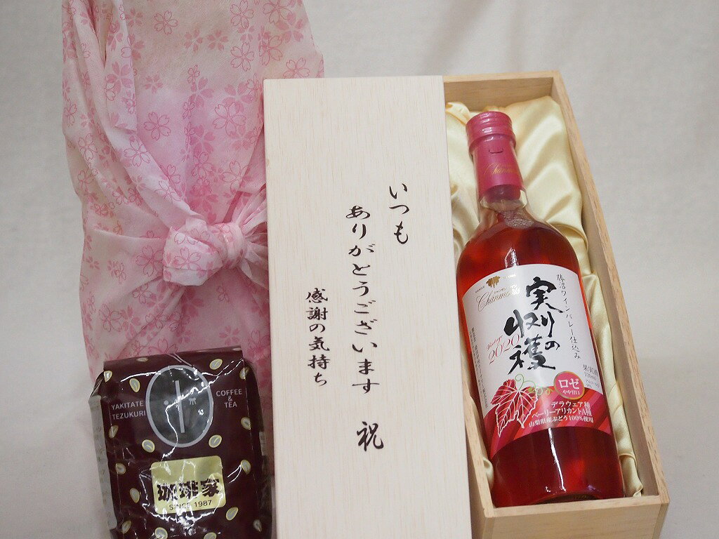 贈り物いつもありがとう木箱と珈琲豆セットオススメ珈琲豆(特注ブレンド200g)実りの収穫ロゼワイン (山梨県) 720ml贈り物いつもありがとう木箱と珈琲豆セットオススメ珈琲豆(特注ブレンド200g)実りの収穫ロゼワイン (山梨県) 720ml 4,980円 税込 送料込 カードOK 贈り物本舗じざけや ![]() | ||
