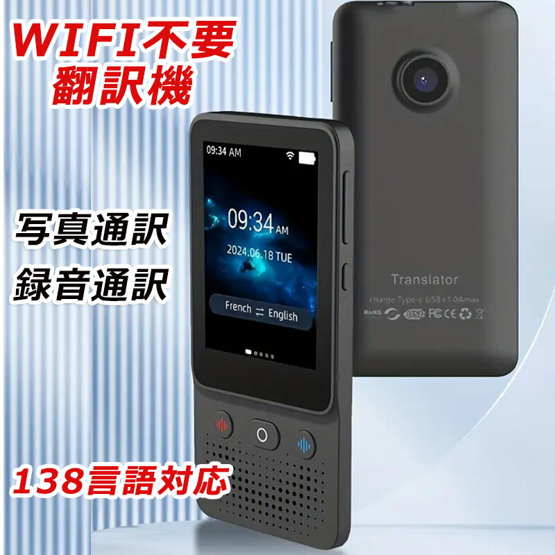 カラー:ブラック定格電圧:5vバッテリー容量:1000mah使用時間:最大2~3時間充電方式:Type-C充電サイズ:13×5.3×1.4cm重量:115gカメラ:500M Pixelスクリーンサイズ: 2.8インチ解像度:240(RGB)*320内蔵:8GB (TFカード差込可能)翻訳機はインターネット接続の際、空港のWi-Fiなどの二次認証が必要なネットワークには対応しておりませんので、予めご了承ください。【WIFI不要】ネットワークなしでも翻訳可能オンラインと比較して、応答速度と精度に制限があるため、ネット環境が整っている場合はオンラインを優先してご利用ください。【オンライン翻訳対応】ネットにつなげば翻訳精度が格段にUP!【操作簡単】ボタンを押して話すだけ双方向音声翻訳【写真翻訳機能】内蔵カメラで写真を撮るだけ画像からの文字に翻訳!カラー:ブラック定格電圧:5vバッテリー容量:1000mah使用時間:最大2~3時間充電方式:Type-C充電サイズ:13×5.3×1.4cm重量:115gカメラ:500M Pixelスクリーンサイズ: 2.8インチ解像度:240(RGB)*320内蔵:8GB (TFカード差込可能)翻訳機はインターネット接続の際、空港のWi-Fiなどの二次認証が必要なネットワークには対応しておりませんので、予めご了承ください。【WIFI不要】ネットワークなしでも翻訳可能オンラインと比較して、応答速度と精度に制限があるため、ネット環境が整っている場合はオンラインを優先してご利用ください。【オンライン翻訳対応】ネットにつなげば翻訳精度が格段にUP!【操作簡単】ボタンを押して話すだけ双方向音声翻訳【写真翻訳機能】内蔵カメラで写真を撮るだけ画像からの文字に翻訳!【ご購入前のご注意】ご使用の前に、同梱されている取扱説明書を必ずご確認いただき、正しい手順でのご使用をお願いいたします。掲載の画像と実物では、ご利用のモニター設定や撮影状況により、若干色味や質感が異なる場合がございますので、予めご了承ください。商品の仕様やデザイン、パッケージにつきましては、改良などの理由により予告なく変更される場合がございます。設置場所や使用環境によっては、本製品の性能を十分に発揮できない場合がございますので、ご注意の上ご利用ください。ご使用中に異常を感じた際は、直ちに使用を中止し、安全を確認の上、必要に応じて販売店またはメーカーへご相談ください。製品の特性上、使用頻度や保管状況、周囲の環境によっては、ご購入時と異なる風合いや状態となる場合がございます。本商品は、電波法令で定められている技術基準に適合していることを証明する技適マークが貼付されていない無線機器であり、日本国内で使用する場合は、電波法違反になるおそれがございます。ご使用の際には、十分ご注意いただきますようお願いいたします。詳しくは、最寄りの総務省総合通信局へお問い合わせください。商品の保管は、高温多湿直射日光を避け、なるべく風通しの良い場所にてお願いいたします。長時間の連続使用は避け、適度に休憩をはさみながらのご使用をおすすめいたします。周囲に障害物や危険物がないことを確認の上、安全にご使用ください。【特記事項】ご購入時期や生産ロットにより、同一商品であっても仕様に若干の違いが生じる場合がございます。製品の性能維持のため、定期的な点検およびお手入れを行っていただくことをおすすめいたします。【製品の特徴と安心ポイント】高性能で使いやすい設計にこだわり、多くのお客様からご好評をいただいております。シンプルな操作方法で初めての方でも安心してご使用いただけます。【こんな方におすすめ】手軽に使える高品質な機器をお探しの方安心のサポート体制を重視される方コストパフォーマンスに優れた商品を求める方カラー:ブラック定格電圧:5vバッテリー容量:1000mah使用時間:最大2~3時間充電方式:Type-C充電サイズ:13×5.3×1.4cm重量:115gカメラ:500M Pixelスクリーンサイズ: 2.8インチ解像度:240(RGB)*320内蔵:8GB (TFカード差込可能)翻訳機はインターネット接続の際、空港のWi-Fiなどの二次認証が必要なネットワークには対応しておりませんので、予めご了承ください。【WIFI不要】ネットワークなしでも翻訳可能オンラインと比較して、応答速度と精度に制限があるため、ネット環境が整っている場合はオンラインを優先してご利用ください。【オンライン翻訳対応】ネットにつなげば翻訳精度が格段にUP!【操作簡単】ボタンを押して話すだけ双方向音声翻訳【写真翻訳機能】内蔵カメラで写真を撮るだけ画像からの文字に翻訳!カラー:ブラック定格電圧:5vバッテリー容量:1000mah使用時間:最大2~3時間充電方式:Type-C充電サイズ:13×5.3×1.4cm重量:115gカメラ:500M Pixelスクリーンサイズ: 2.8インチ解像度:240(RGB)*320内蔵:8GB (TFカード差込可能)翻訳機はインターネット接続の際、空港のWi-Fiなどの二次認証が必要なネットワークには対応しておりませんので、予めご了承ください。【WIFI不要】ネットワークなしでも翻訳可能オンラインと比較して、応答速度と精度に制限があるため、ネット環境が整っている場合はオン