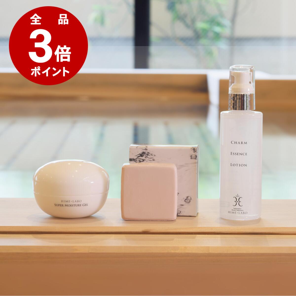 商品名 姫コスメ基本セット 区分 日本製/化粧品 容量 〔姫ラボ石けん〕80g 〔姫ラボエッセンスローション〕150ml 〔姫ラボゲル〕100g 全成分 〔姫ラボ石けん〕 カリ含有石ケン素地・水・オリーブ果実油・ハチミツ・グリセリン・温泉水・酸化チタン・塩化Na・エチドロン酸4Na・BG・水酸化Al・グンジョウ・酸化鉄・フェノキシエタノール 〔姫ラボエッセンスローション〕 温泉水・BG・グリセリン・水・イノシトール・ベタイン ・フェノキシエタノール・クエン酸Na・ラウリン酸ポリグリセリル-10 ・クエン酸・エチドロン酸・キサンタンガム・ヒアルロン酸Na 〔姫ラボゲル〕 温泉水・グリセリン・BG・スクワラン・水・ベタイン・イノシトール・トレハロース・1.2-ヘキサンジオール・カルボマー・(C12-16)アルコール・フェノキシエタノール・水酸化K・水添レシチン・パルミチン酸・トコフェロール・グリチルリチン酸2K・クエン酸 製造販売元 株式会社サティス製薬 広告文責 玉造温泉 美肌研究所 姫ラボTEL.0852-62-1556 関連キーワード/様々なシーンでご利用いただいております 石鹸 石けん 固形石鹸 洗顔 全身洗える オールインワン 化粧水 乳液 ゲル ジェル オールインワンゲル 化粧水 ヒアルロン酸 ローション 美容液 セット お試し 乾燥肌 敏感肌 混合肌 におい においが気になる 匂い 臭い ハリ たるみ しわ シワ うるおい シンプルケア 無添加 ランキング 人気 ユニセックス 化粧品 日本製 プレゼント パラベンフリー 温泉 化粧品 コスメ ギフト 低刺激 皮脂バランス 玉造温泉 メンズ しっとり ユニセックス サラサラ ベタベタしない 彼氏 彼女 10代 20代 30代 40代 50代 60代 70代 80代 メンズ 男性 デリケート肌 肌荒れ スキンケア 美容 女性用 男性用 弾力 毛穴 保存料不使用 男性スキンケア 肌ケア おすすめ 母の日 父の日 バレンタインデー ホワイトデー クリスマス 御祝 御礼 お土産 手土産 贈りもの お返し姫ラボのスキンケアはこの3アイテムから★ 玉造温泉から生まれた姫コスメのセット。 スキンケアができる基本のアイテムをまとめてお届けします。 【自然の恵み】玉造温泉から生まれた姫コスメ 玉造温泉水の美肌作用とは… ・肌の水分量が増える! 水分量が増え、肌が柔らかくなり、健康な若々しい肌が期待出来ます。 ・キメ細かく整う! 肌のキメ(個数)が増え、キメ細かく整い、毛穴の目立ち・くすみが改善され、 ツルツルお肌が期待できます。 ・顔色の変化! 血行の流れをサポートし、健康的な赤みを取り戻す。 バランスのとれた理想の肌色へ近づいていきます。 美肌の湯 玉造温泉水配合の姫ラボ石鹸 姫ラボ石鹸は当店人気NO.1! その理由はモコモコなきめ細かい泡です。 泡のキメが細かいと毛穴の隅々まで入り込み、汚れをしっかりと洗い流してくれます。 玉造温泉水を80%使用した姫ラボエッセンスローション 温泉水80%+ヒアルロン酸配合の保湿に特化した化粧水。 温泉の保湿成分とヒアルロン酸がじっくりとお肌の奥まで浸透し、しっとりなめらかなお肌へと導きます。 美肌の湯配合のオールインワン保湿ゲル 姫ラボのゲルは化粧水・乳液が1つになったオールインワンゲルです。 肌に水分と油分を同時に補給しハリ・弾力を与えてくれます。 潤い成分を多く含んだ温泉水が乾燥を防ぎ、乾き知らずなお肌へと導きます。 ぜひ姫コスメをセットでご利用ください♪ 7,150円 税込 送料込 カードOK レビュー36件 玉造温泉 姫ラボ 楽天市場店 ![]() | ||